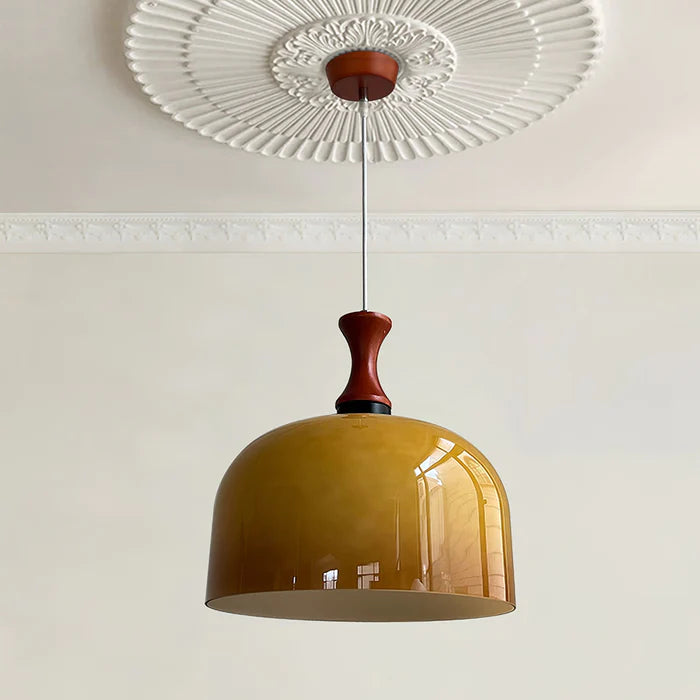 Retro puinen keltainen kupoli keittiösaaren riippuvalaisin