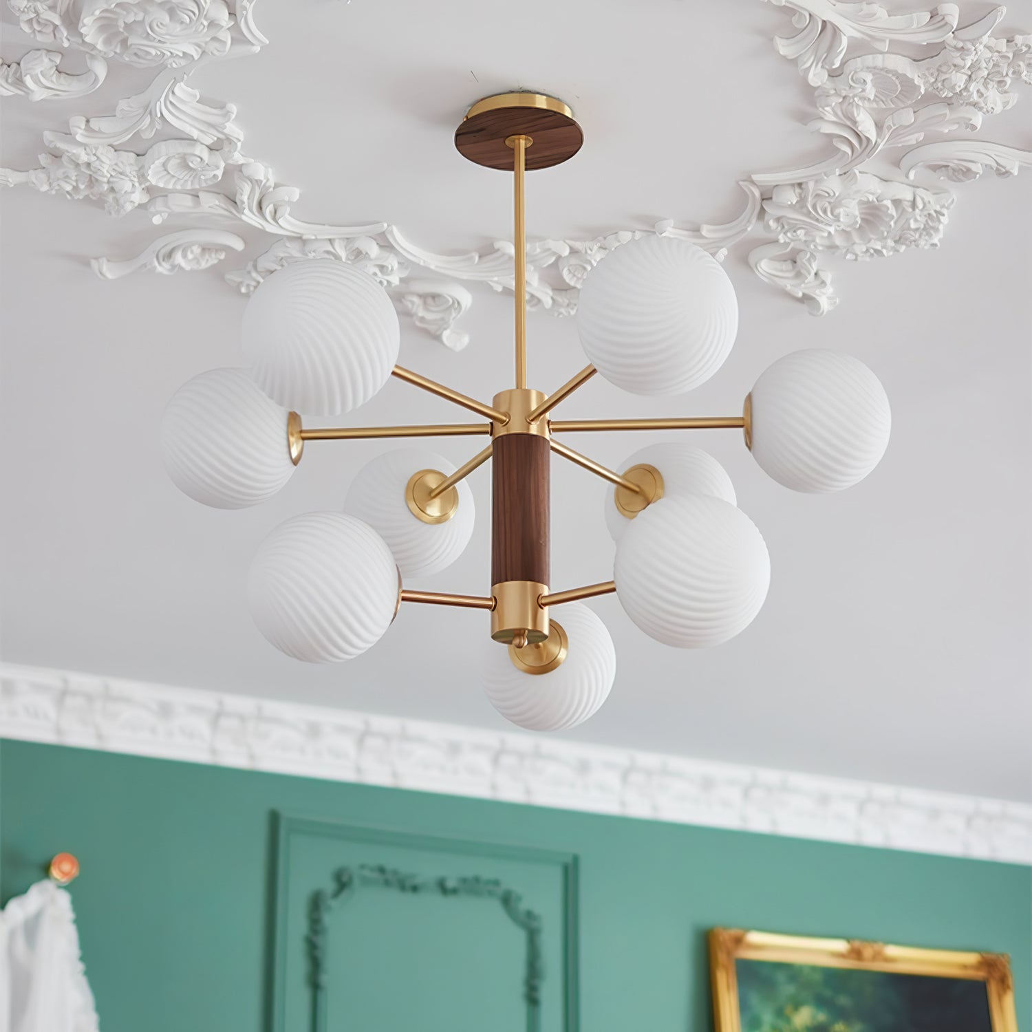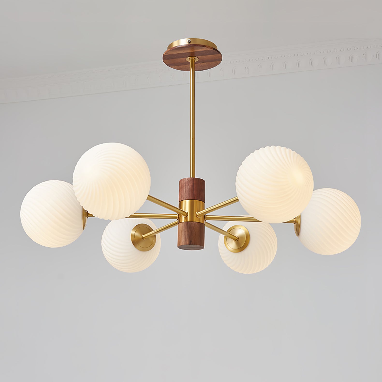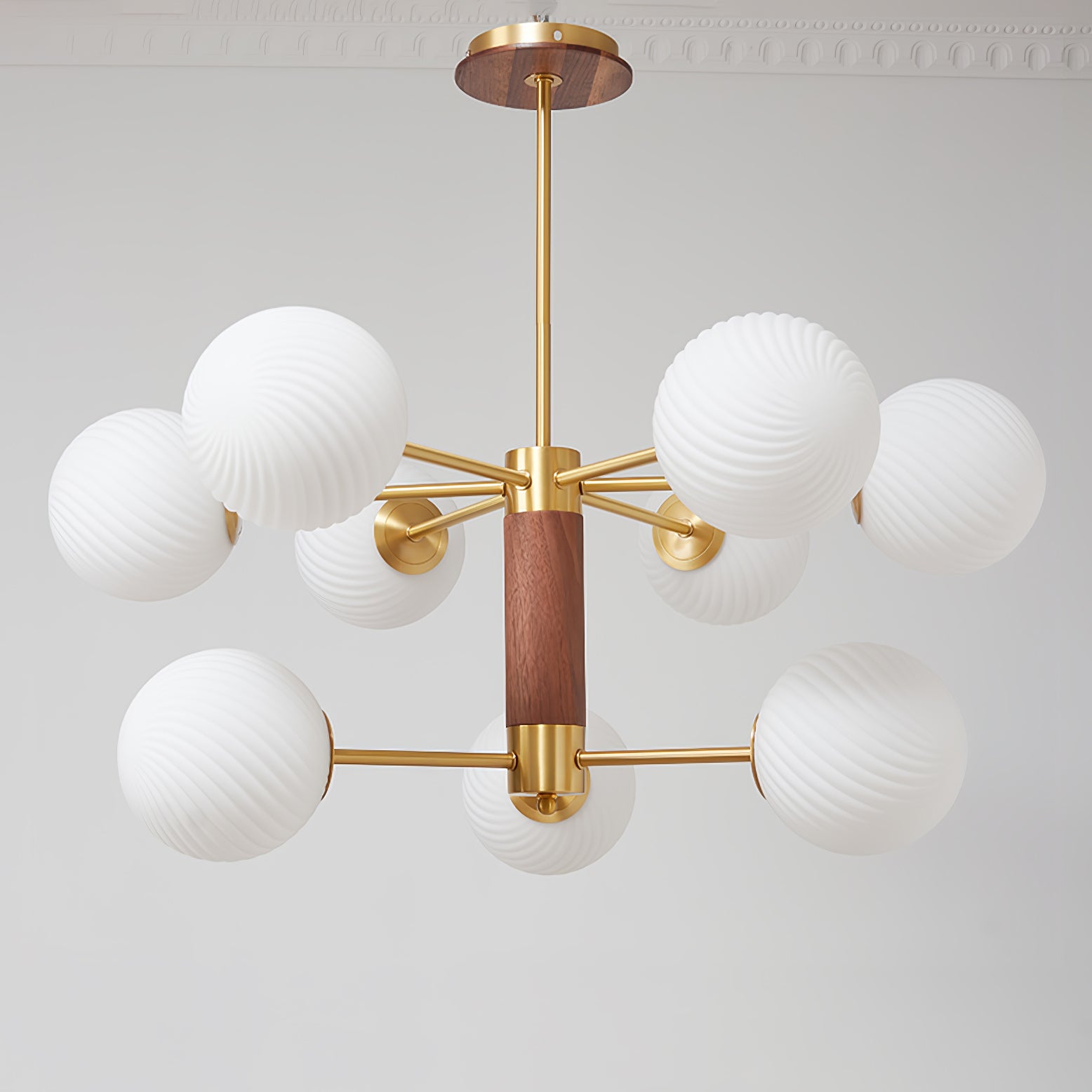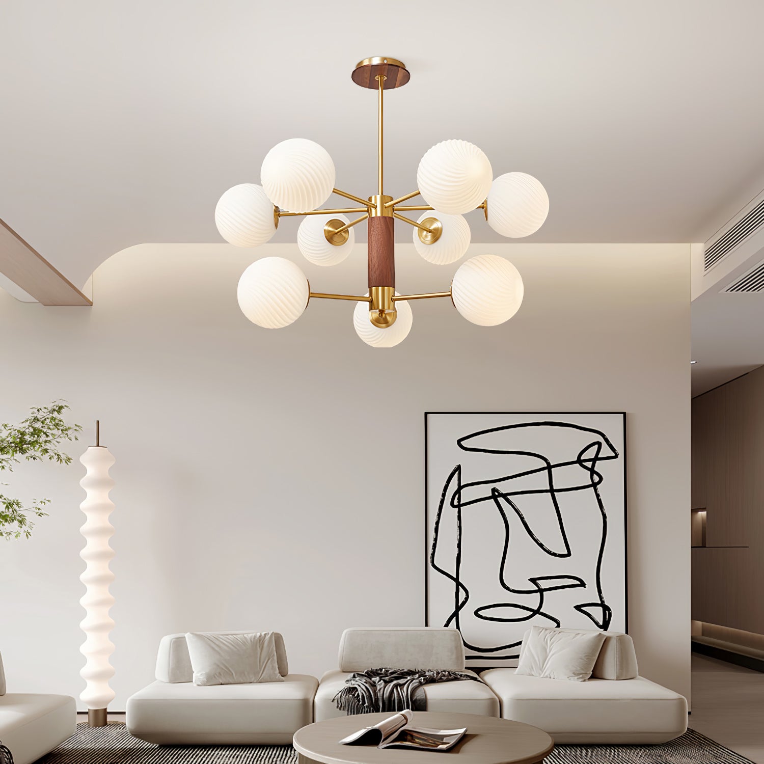 Tämä moderni ja ylellinen Babble Glass -kattokruunu valaisee tilasi hienostuneella ja tasapainoisella tavalla viinirypäleen muotoisilla uurretuilla lasipalloilla. Ribbotettu lasirakenne korostaa lumoavaa messinkiviimeistelyä, kun taas suuri haarautuva siluetti sopii täydellisesti nykyaikaisiin, avoimiin tiloihin.