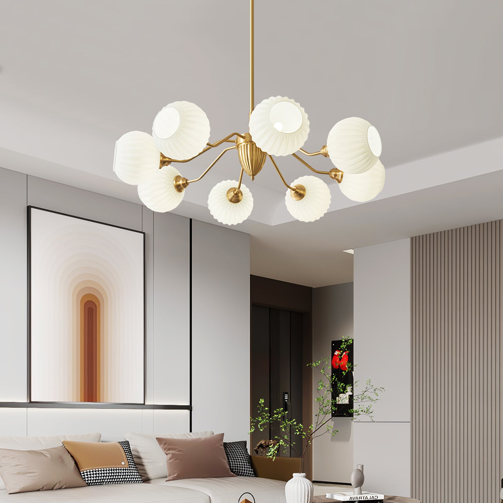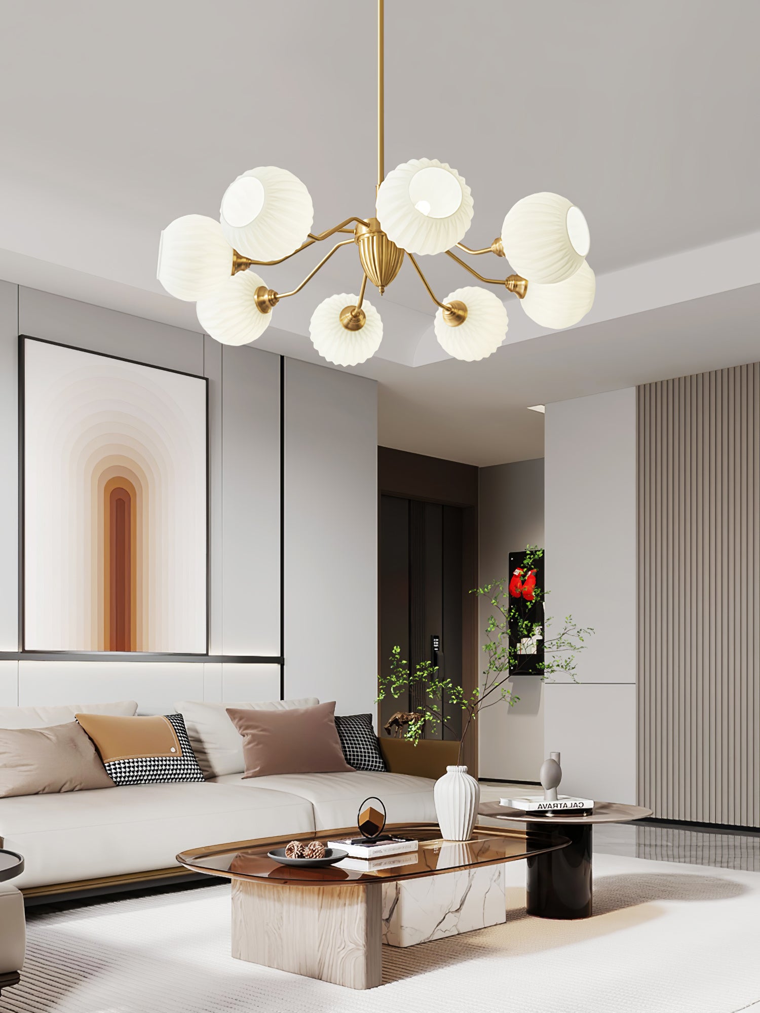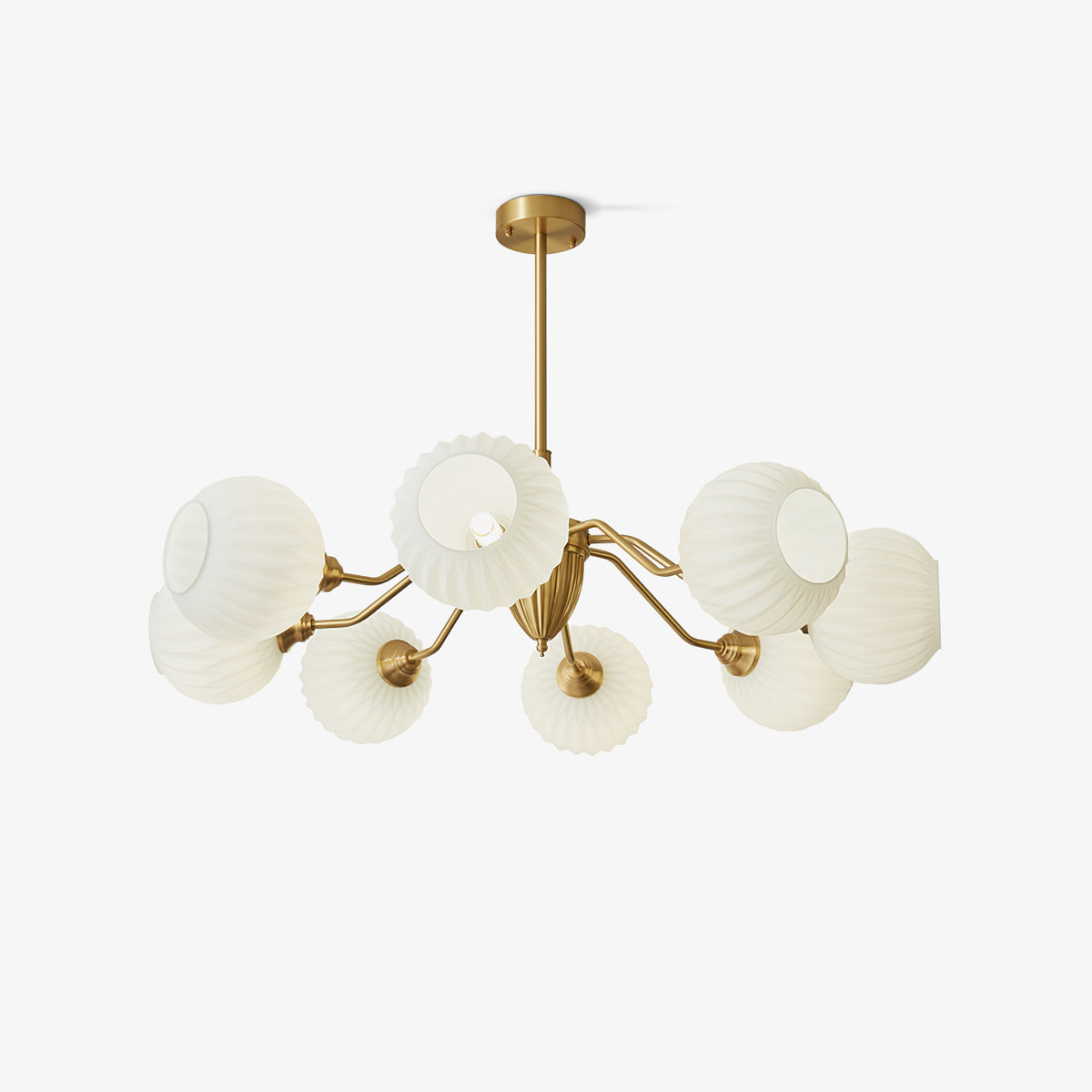 Tämä uurrettu lasipallokattokruunu tarjoaa ajatonta estetiikkaa ainutlaatuisella uurretulla lasivarjostimellaan kermanvalkoisissa ja kullankeltaisissa sävyissä. Sen luoma lämmin ja kutsuva tunnelma lisää hienostuneisuutta mihin tahansa huoneeseen, kun taas ylellinen ja herkkä viehätys herättää eleganssia.