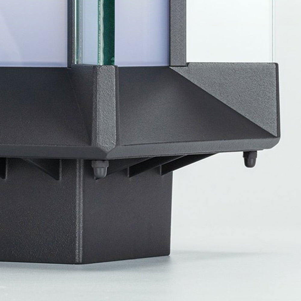 Ulkovalaisin on suorakaiteen muotoinen läpinäkyvällä kotelolla, sen ulkonäkö on helppo ja moderni ja se voidaan asentaa tukevasti maahan tai pylvääseen.