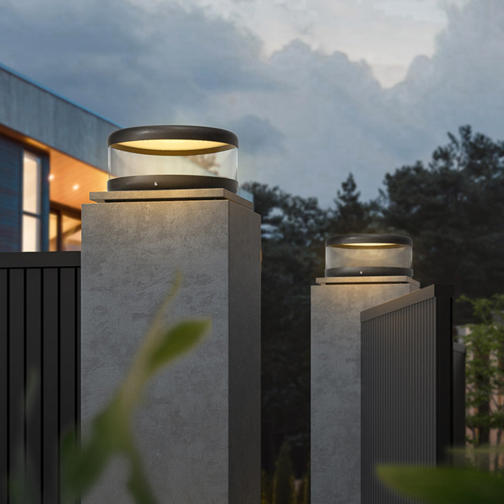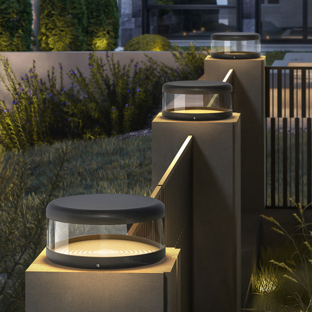 Riley moderni sylinterimetallinen aurinkolamppu ulkona, lämmin valo