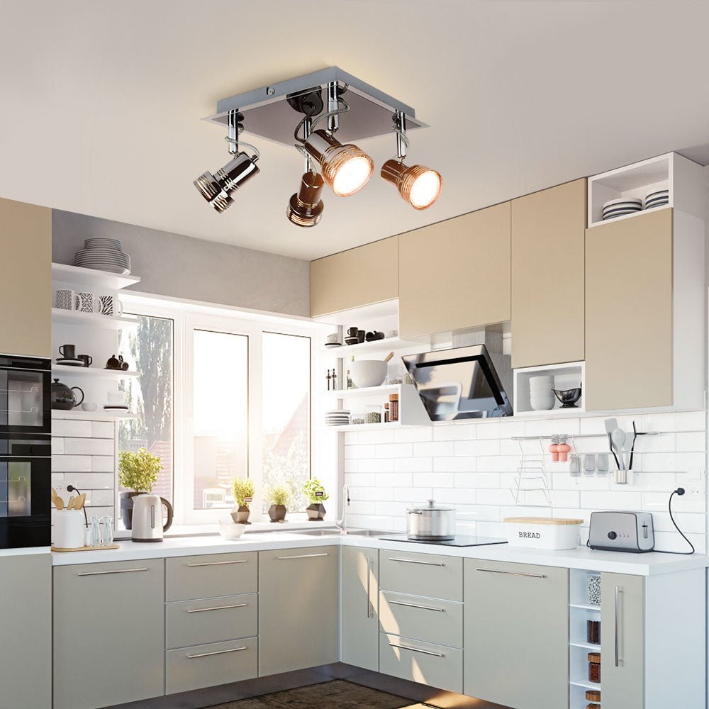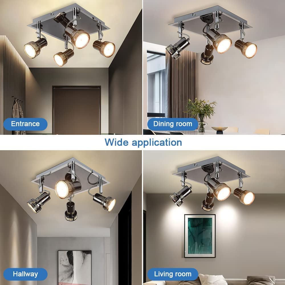 DINGLILIGHTING Depuley 4-suuntaan pyörivä LED-kattovalo, kromiviimeistelykohdevalo, lämmin valkoinen 3000K, neliölevy keittiön valot makuuhuoneeseen, olohuoneeseen, GU10-lamput mukana