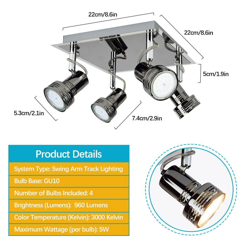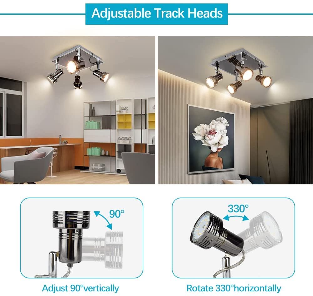 3. ENERGIANSÄÄSTÖ: Tyylikkäät neliönmuotoiset kiskovalot sisältävät 4 x 3W GU10 Led-polttimot, yhteensä 960 lumenia, 3000K. (MAX 40W per lamppu). Täysin himmennettävissä yhteensopivalla himmenninkytkimellä täydellisen tunnelman luomiseksi. (Himmennettävät polttimot eivät sisälly toimitukseen).