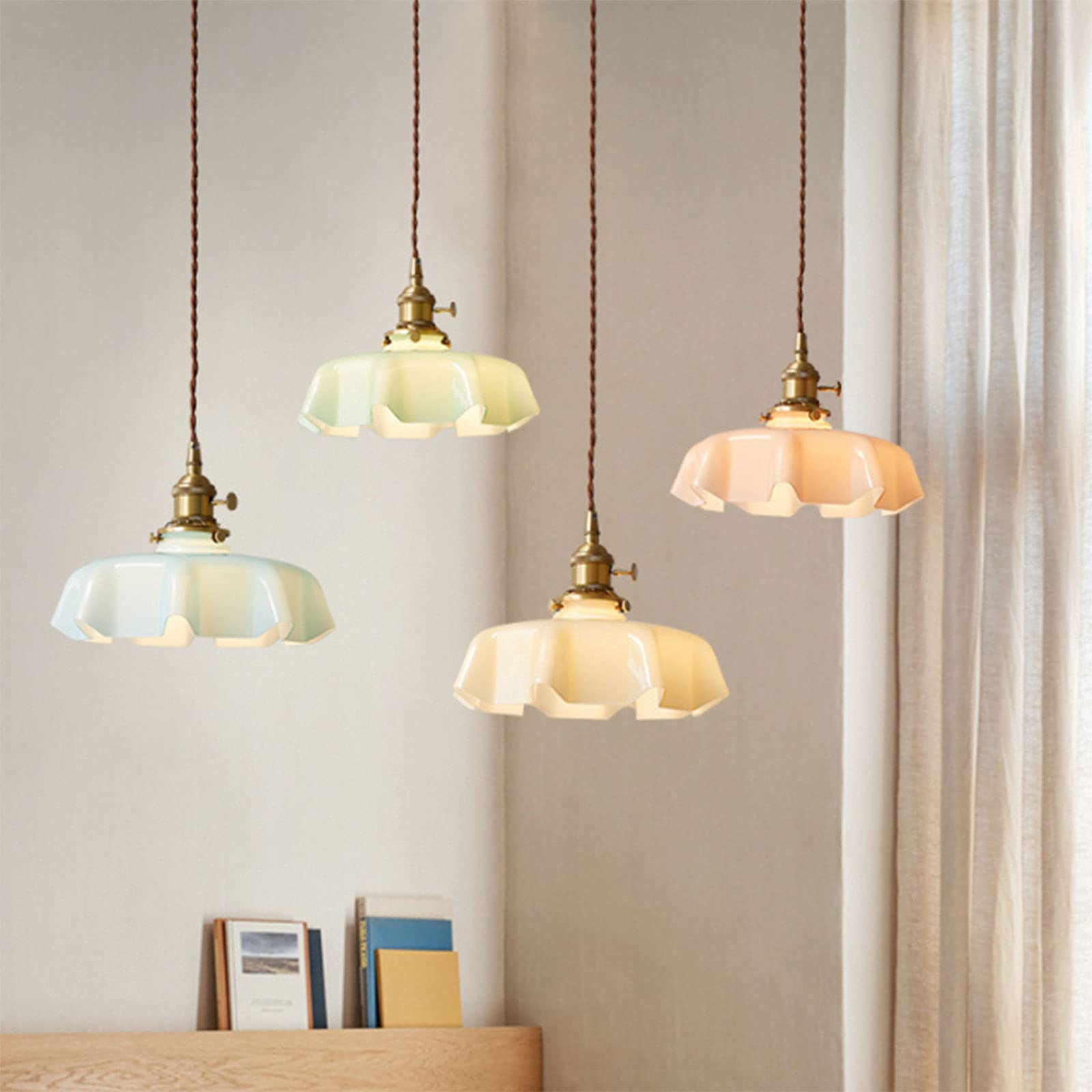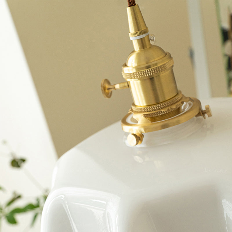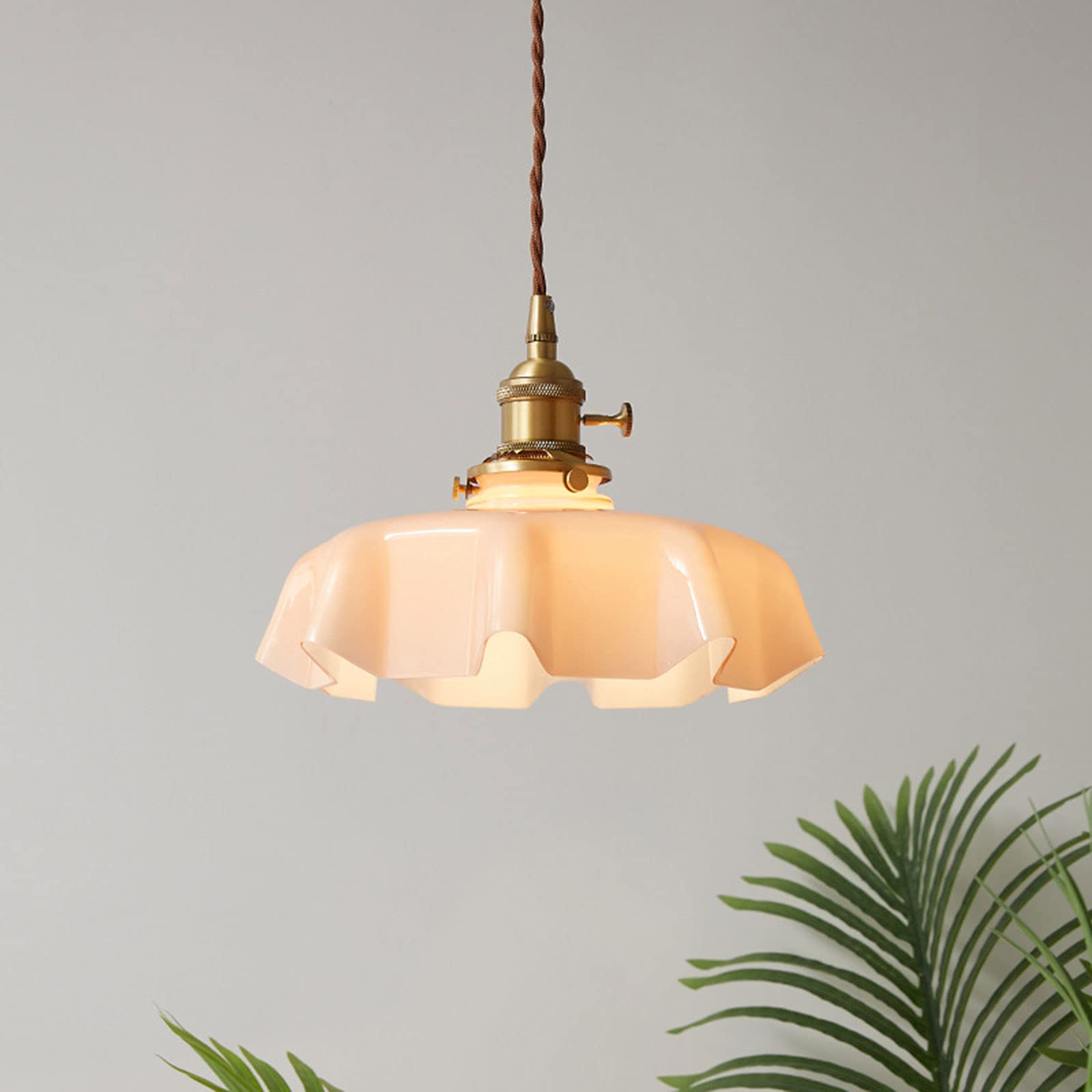 Vintage ranskalainen röyhelöinen läpinäkymätön lasiriippuvalaisin röyhelöllä drapedoitu muoto