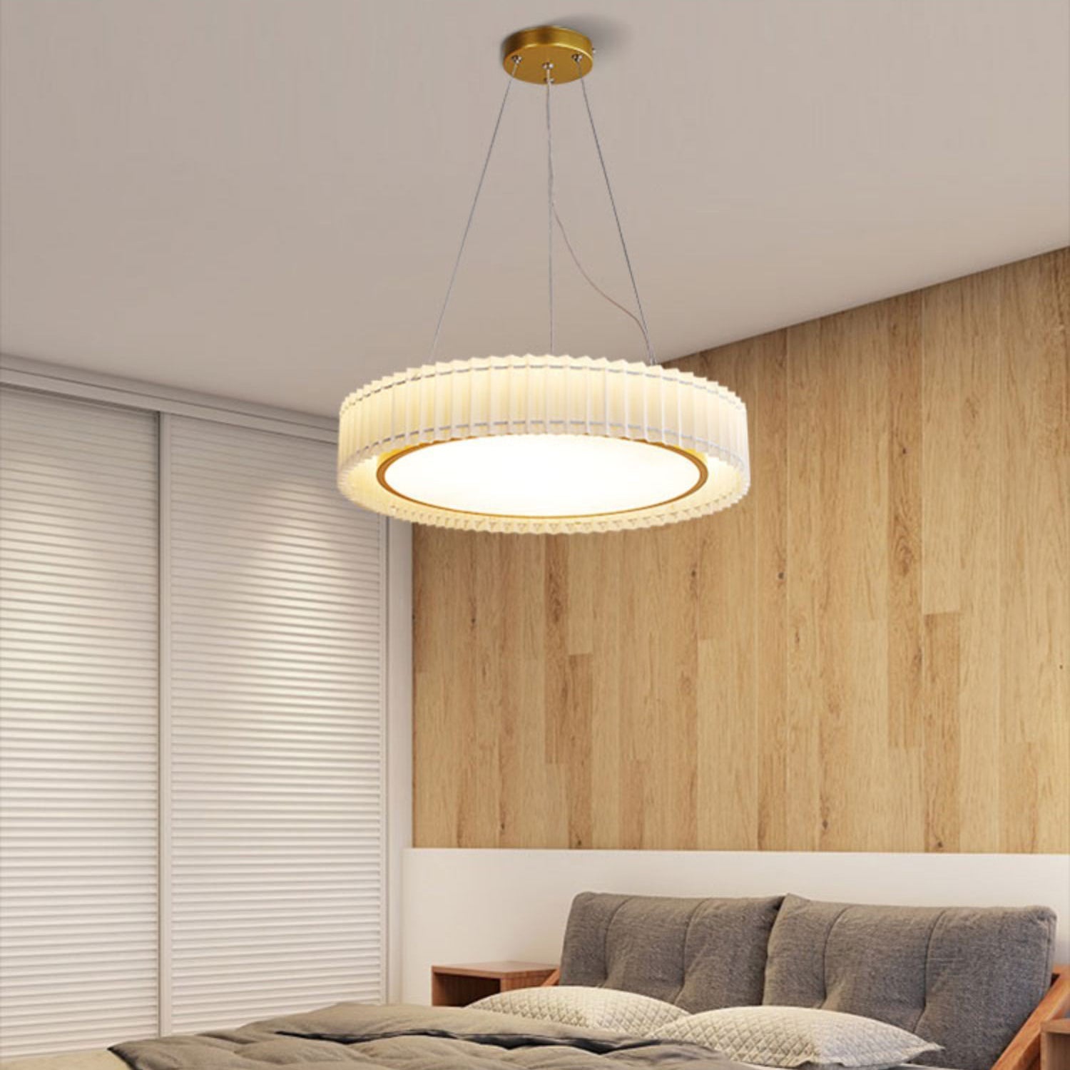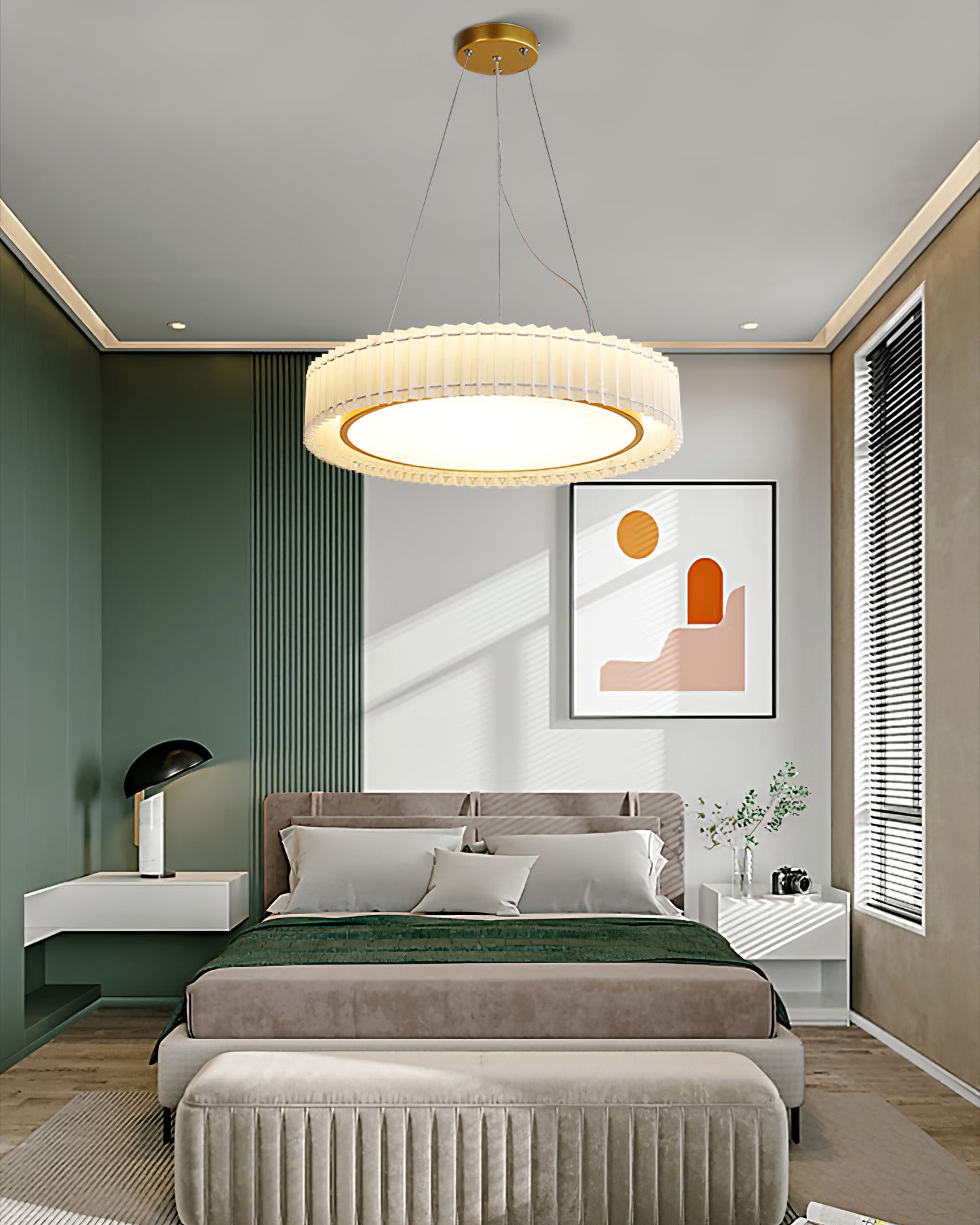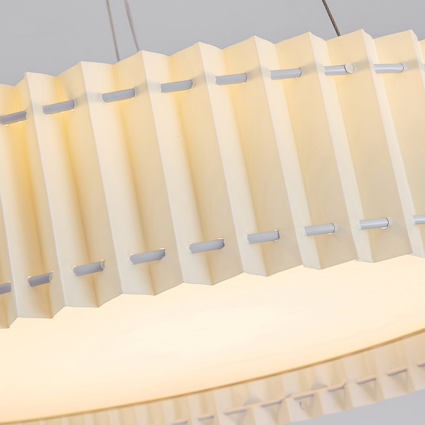 Tämä lamppu on valmistettu laskostetuista kangasmateriaaleista ja sen rakenne on sileä ja herkkä. Sen valonläpäisy on tasainen ja kirkas, ja se voi tehdä valosta häikäisevämmän ja viehättävämmän. Laskostettuja valaisimiamme on saatavilla sekä katto- että riippuvalaisimina kotisi eri tilojen valaistustarpeisiin. Halusitpa asentaa sen makuuhuoneeseen tai olohuoneeseen, keittiöön, ruokailutilaan, työhuoneeseen, löydät oikeanlaisen.
