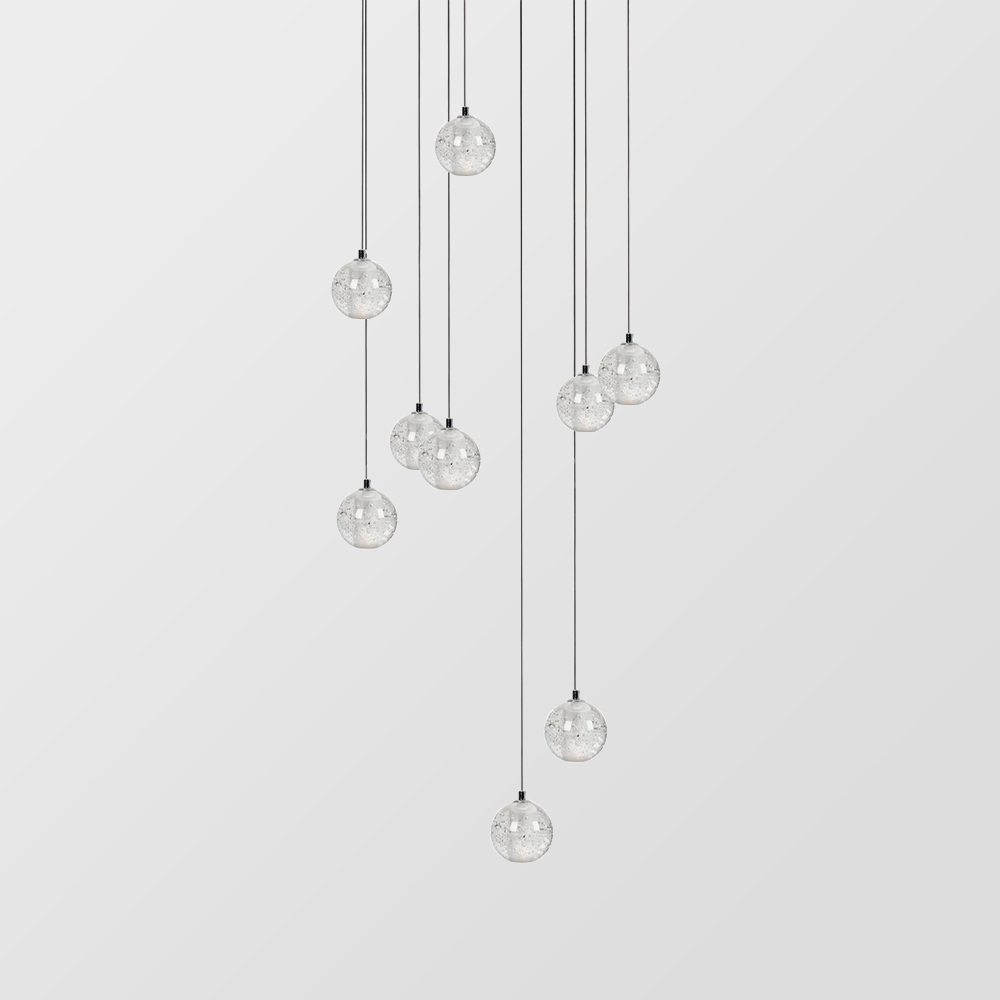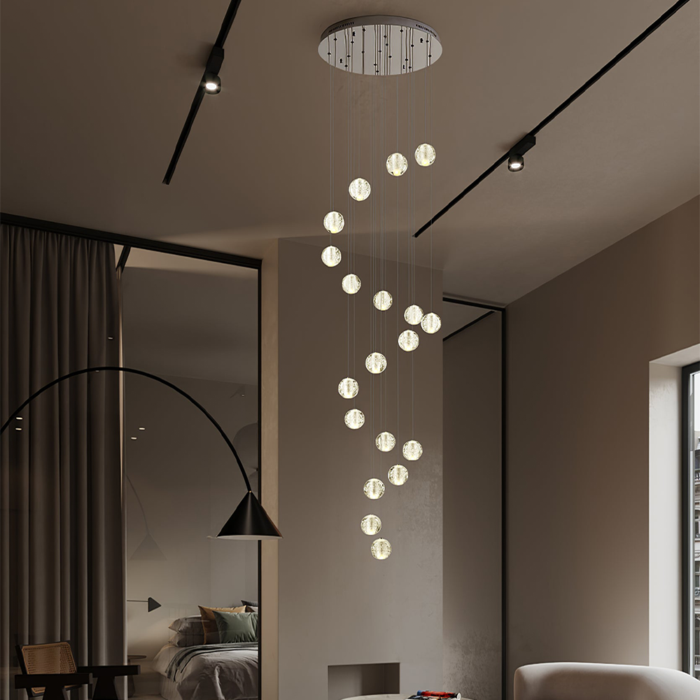 Crystal-riippuvalaisin toimii vuorovaikutuksessa lasin epätäydellisyyksien kanssa ja luo rikkaan valokehän. Visuaalisesti melko hienovarainen, se saa valtavasti voimaa, kun se ryhmittyy satunnaisiin muodostelmiin vaaka- ja pystysovelluksissa. Suosittuja asuin- ja kaupallisia sovelluksia ovat keittiöt, ravintolat, makuuhuoneet ja komerot, käytävät, terassit, portaiden valaistus, eteiset ja aulat sekä muut suuret sisä- ja ulkotilat yksityisissä ja julkisissa tiloissa.