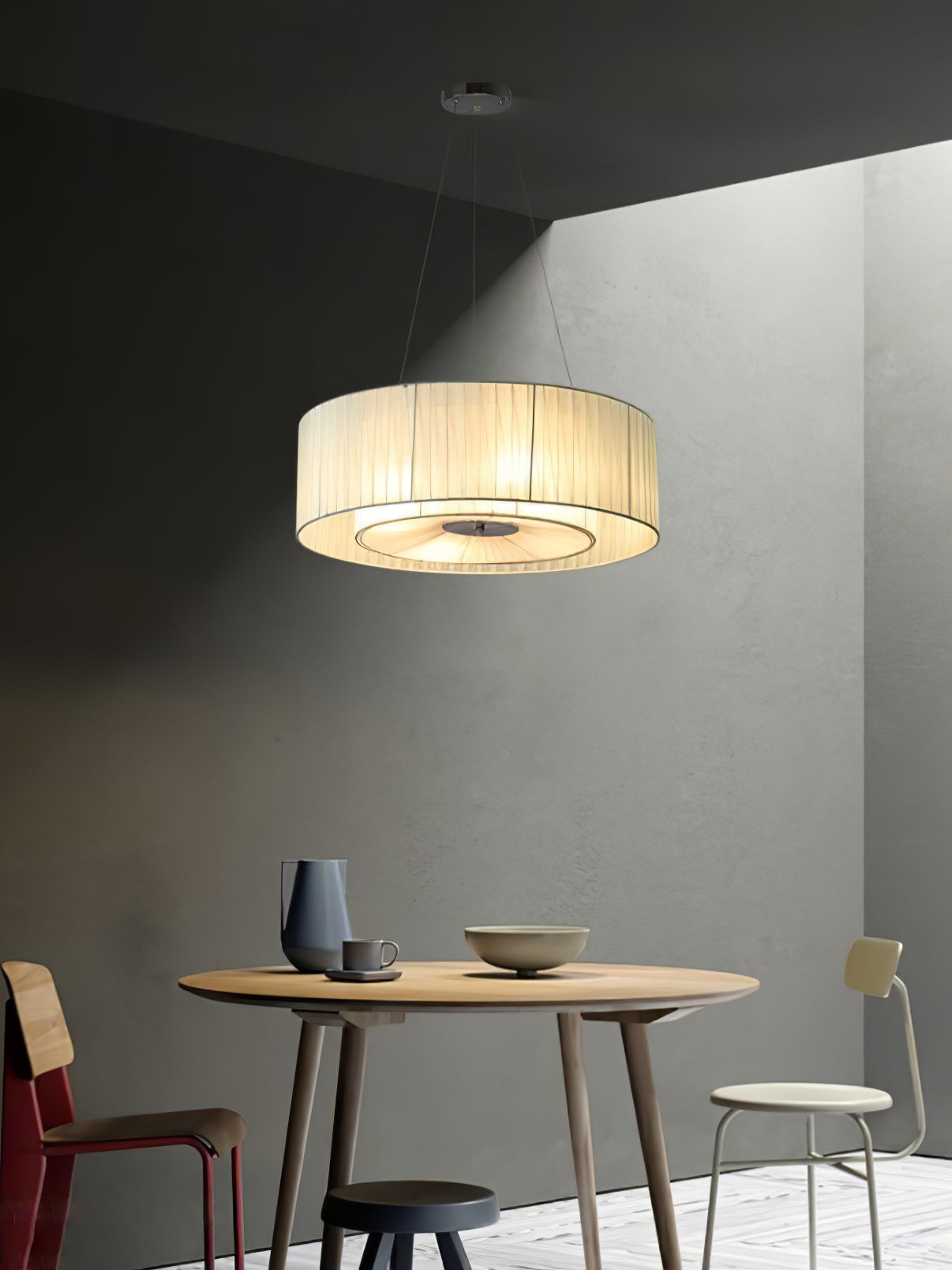 Ruffle Pleated -riippuvalaisin on täydellinen valinta ajattoman tyylin lisäämiseen mihin tahansa huoneeseen. Siinä on upea laskostettu kangas ja klassinen japanilaistyylinen muotoilu, joten se on varmasti katseenvangitsija keskipiste. Sen 100 % polyesterikangasrakenne varmistaa, että se on kevyt ja pitkäikäinen. Piristä tilaasi tällä tyylikkäällä riippuvalaisimella.