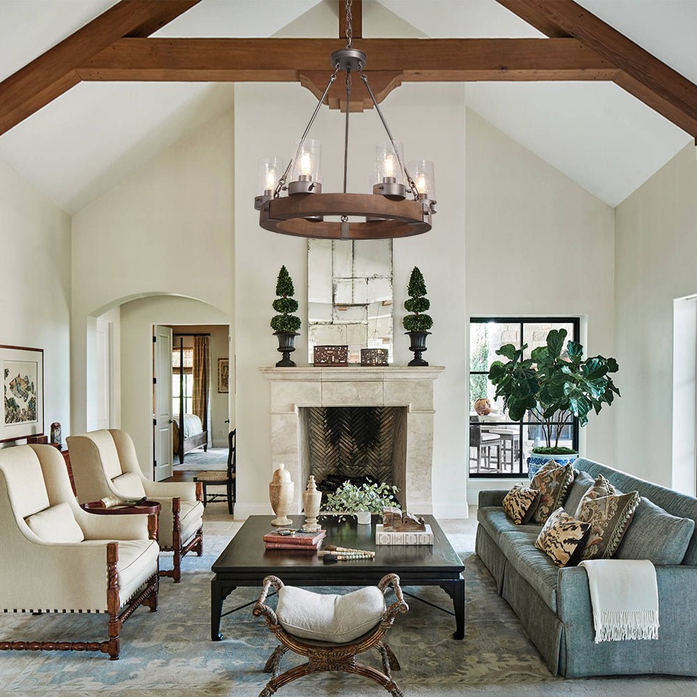 Maalaismainen 6-kevyt vaunun pyörän kattokruunu