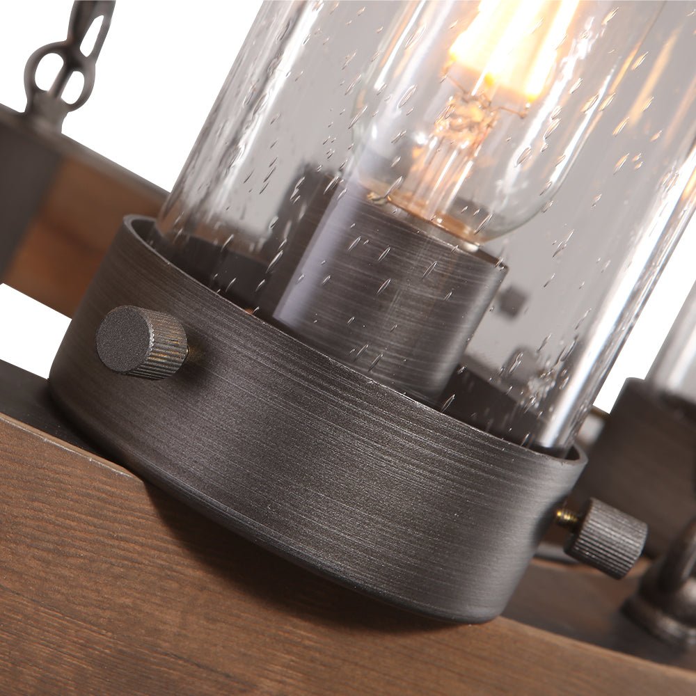 Kuusi valoa • Ruskea puu • Kylvetty lasi • Antiikki harjattu hopea • E26/E27 Keskikantaiset polttimot (ei sisälly) • Kiinteä • UL-listattu
