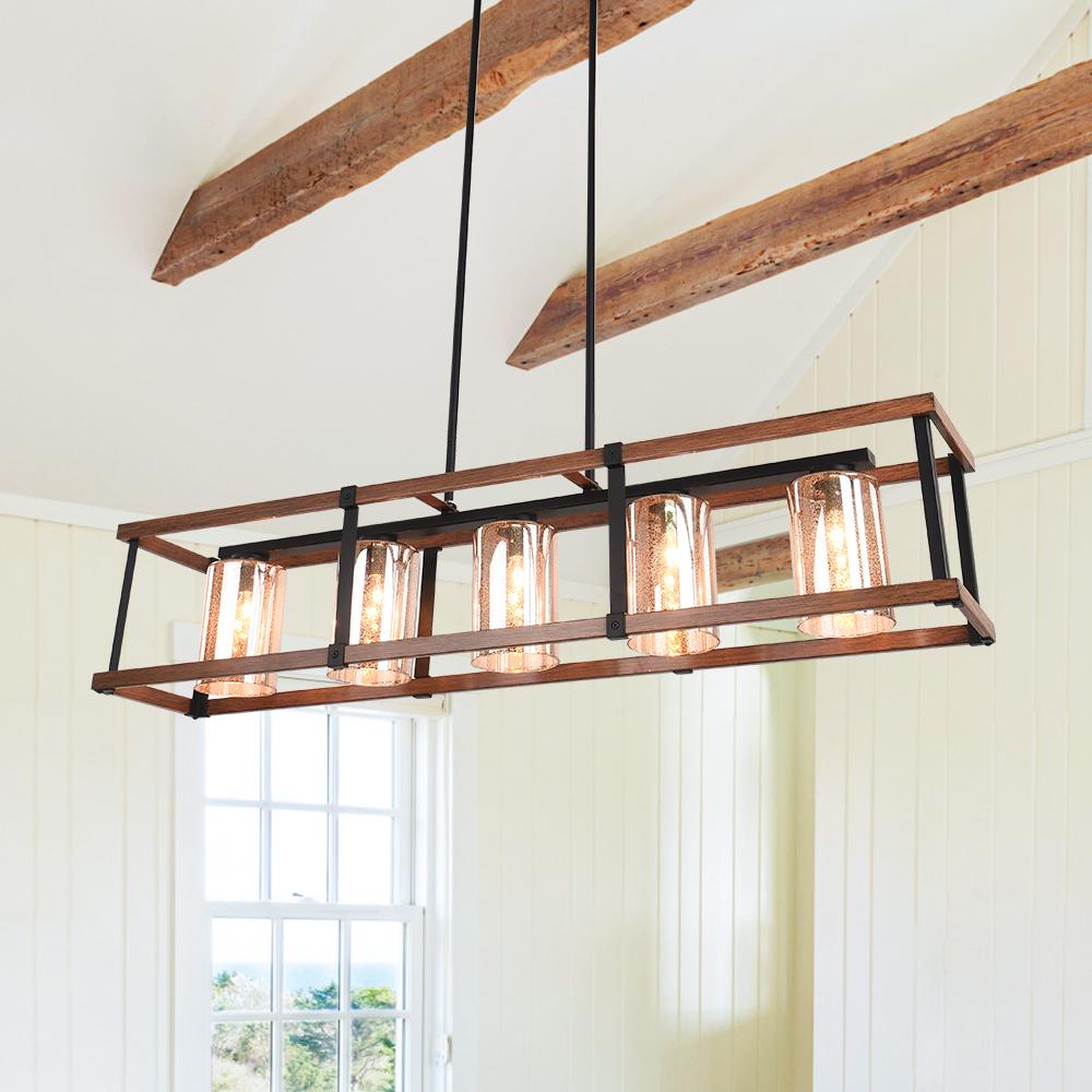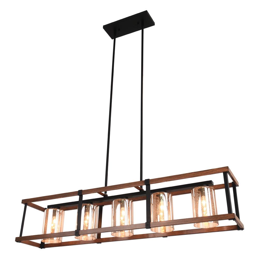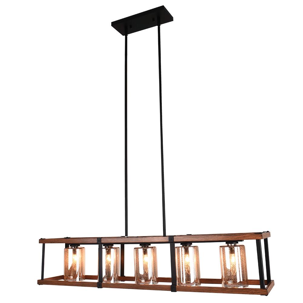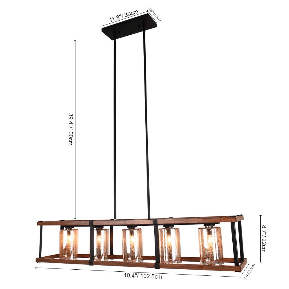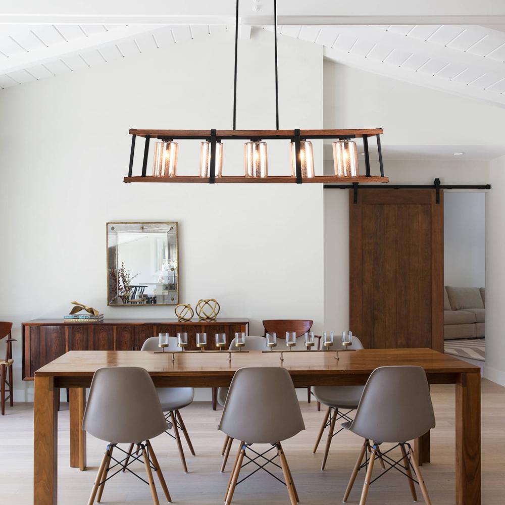 Tämä keittiön saarekeriipus on täynnä yksinkertaista maalaistaloa, ja se on valmistettu kiinteästä metallista avoimen tekopuisen suorakaiteen kehyksen näyttämiseksi. Sisällä on tilaa viidelle lieriömäiselle lasimaalaukselle. Tämä saarimainen lineaarinen kattokruunu, johon mahtuu E26/E27-keskikantaiset polttimot, valaisee miellyttävää lasimaalausta. Ihanteellinen mökki- ja siirtymätiloihin, tämä maalaismainen lasivarjoinen suorakaidekruunu sopii täydellisesti keittiösaarekkeen, ruokapöydän, olohuoneen tai muiden tilojen yläpuolelle, joissa halutaan vahvaa ilmettä.Detail
