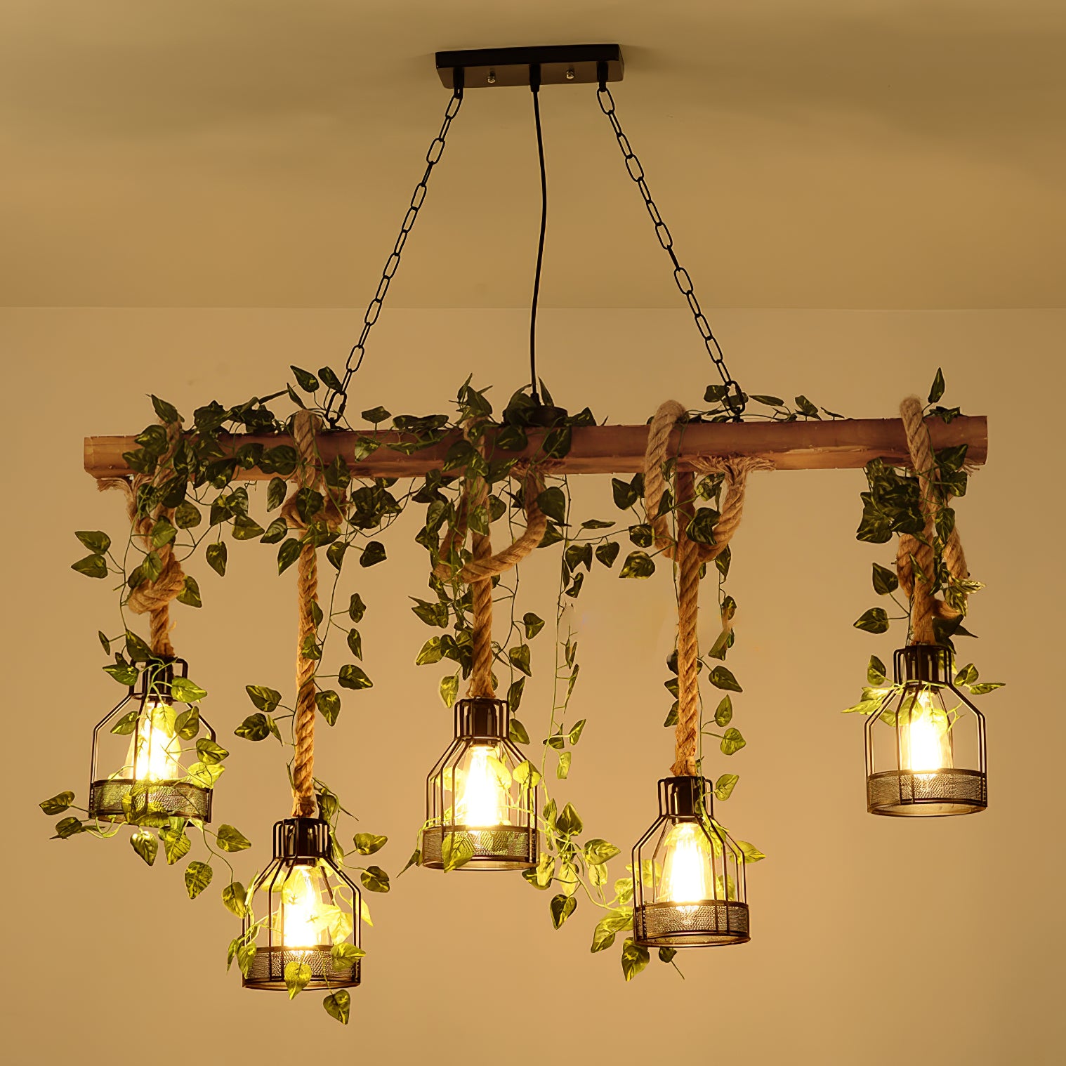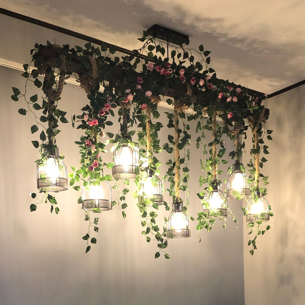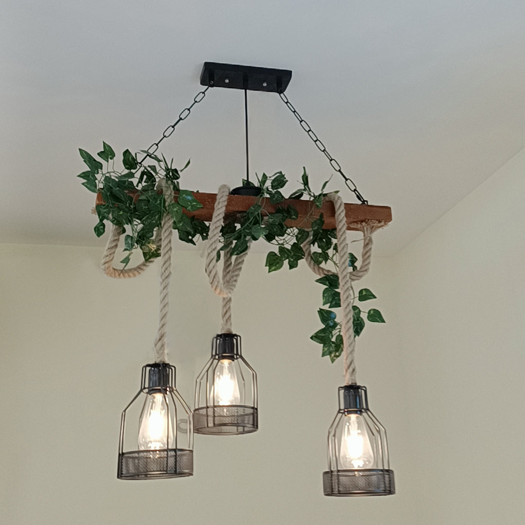 Materiaali: metalli, hamppuköysi, puu, keinotekoiset viherkasvit