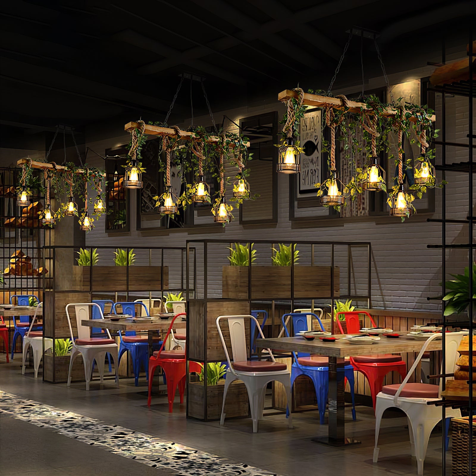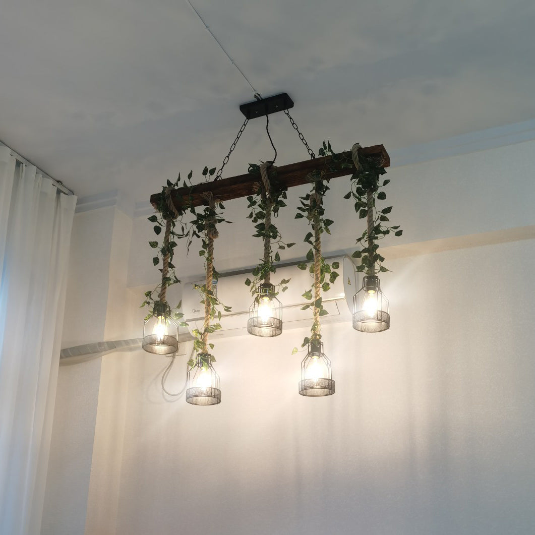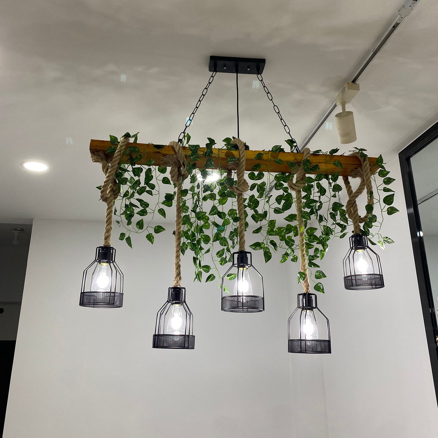 Materiaali: metalli, hamppuköysi, puu, keinotekoiset viherkasvit