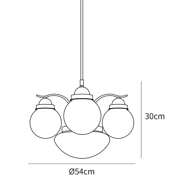 Ryttenberg-kattokruunussa on retro-tyylikäs ulkoasu ja klassinen maapallon muoto valkoisessa lasissa. Kuparipinnoitettu/kromipinnoite esittelee lampun rungon rikkautta. Saatavana useilla lasikannen viimeistelyillä valaisimen tyylin lisäämiseksi.