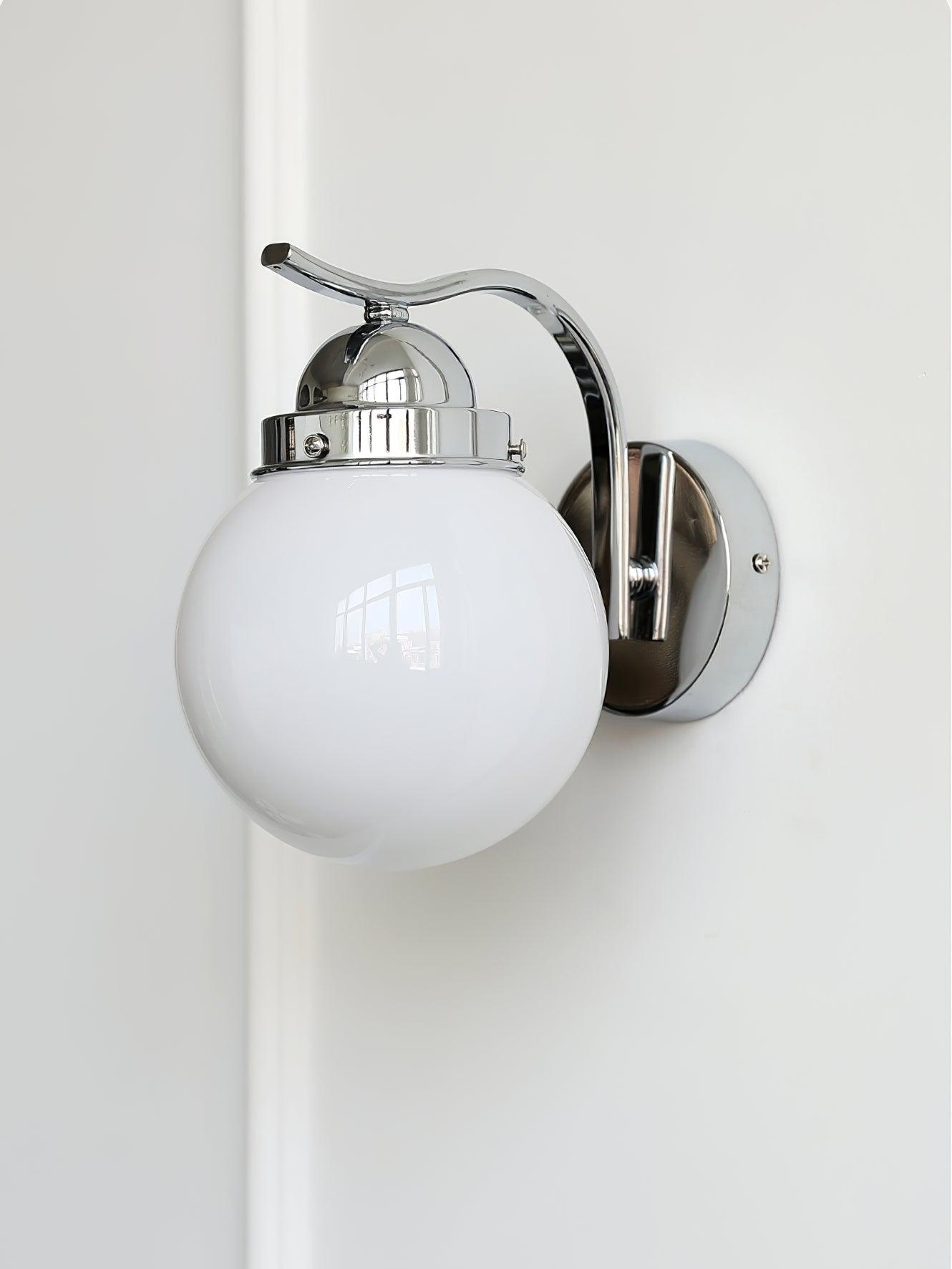 Ryttenberg-seinävalaisimessa on retro-tyylikäs ulkoasu ja klassinen maapallon muoto valkoisessa lasissa. Kuparipinnoitettu/kromipinnoite esittelee lampun rungon rikkautta. Saatavana useilla lasikannen viimeistelyillä valaisimen tyylin lisäämiseksi.