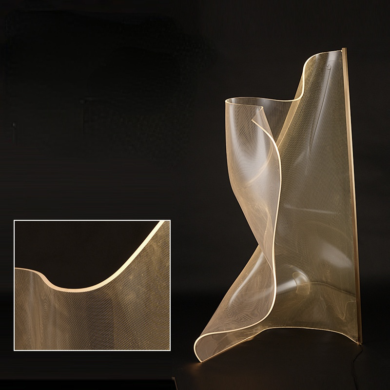 - Lattiavalaisimen muoto on hyvin ainutlaatuinen epäsäännöllinen muoto, kuin tuulessa lentävä kirjan sivu, täynnä taidetta.