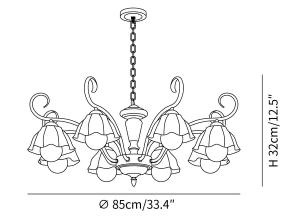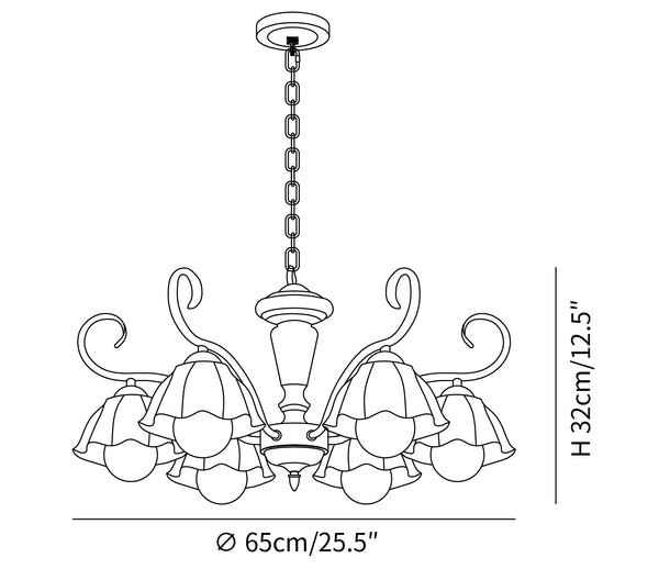 Savoy Flower -kattokruunu tarjoaa sekoituksen luontoa ja kodin sisustusta. Sen muotoilu on saanut inspiraationsa kukkivista kukannupuista ja siinä on maalaismainen amerikkalainen tunnelma. Sen luonnon kauneuden ja sisustuksen yhdistelmä luo upean ilmeen, joka sopii kaikkiin asuintiloihin.