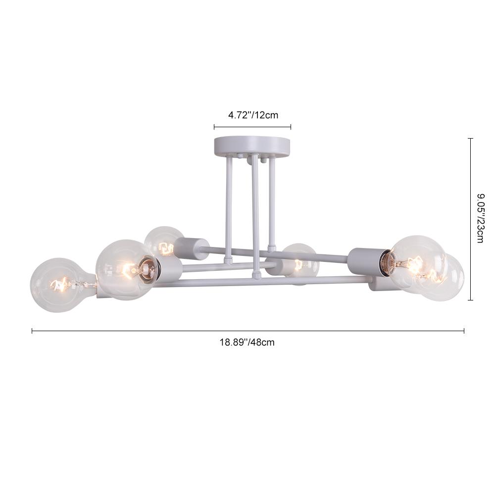 Tämä vuosisadan puolivälin kattovalaisin, joka esittelee näyttävän esityksen huoneessasi, lisää vauhdin arvoista ilmettä. Klassiseen sputnik-suunnitteluun perustuvassa puolitasossa asennettavassa valaistuksessa on kolme leikkaavaa vartta, joista jokainen tukee kahta lieriömäistä pistorasiaa molemmissa päissä. Tämä 6-valoinen sputnik-kattokruunu, johon mahtuu E26/E27-keskikantaiset polttimot (ei sisälly toimitukseen), on erinomainen työvalonlähde keittiöön, ruokasaliin, olohuoneeseen ja makuuhuoneeseen. Mikä vielä parempaa, tämä puoliksi vaahtoava 6 valon sputnik-kattokruunu on saatavana komeana mustana, samppanjakultaisena tai puhtaan valkoisena viimeistelynä, joka täydentää melkein mitä tahansa sisustusta.Detail