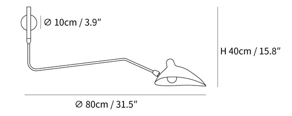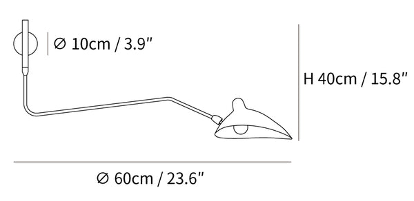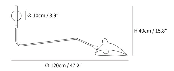 Mouillen hyönteismäiset mallit 1950-luvulta luotiin reaktiona aikansa raskaampiin ja kömpelömpiin italialaismalleihin. Mouille halusi luoda moderneja valaisimia, joissa on herkät linjat ja upea visuaalinen läsnäolo. One-Arm seinävalaisin on yksi Sergen monipuolisimmista valaisimista.