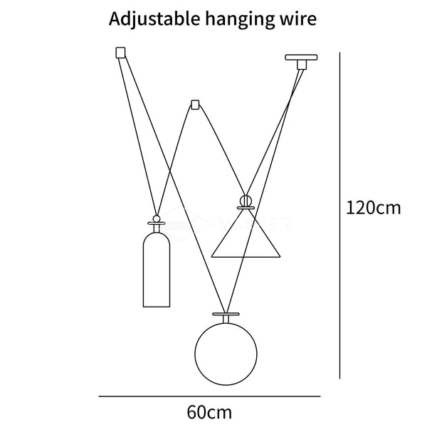 59″ Säädettävä riippukorkeuskaapeli, jota voidaan pidentää tarpeen mukaan.