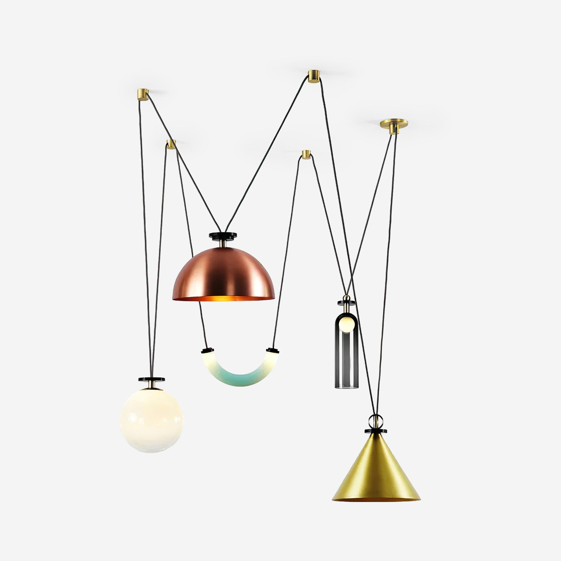 Shape Up on monipuolinen valaisinsarja, joka juhlii rohkeita geometrisia muotoja: leikkisät vastakkainasettelut nostavat perinteiset käsitykset symmetriasta dynaamisen tilaharmonian hyväksi. Modulaarinen järjestelmä mahdollistaa muotojen ripustamisen ja sommittelun vastauksena tilan arkkitehtuuriin ja toimintoihin, ja sen sävyt verkotetaan huomaamattomasti liitäntäjohtojen ja napojen kautta.