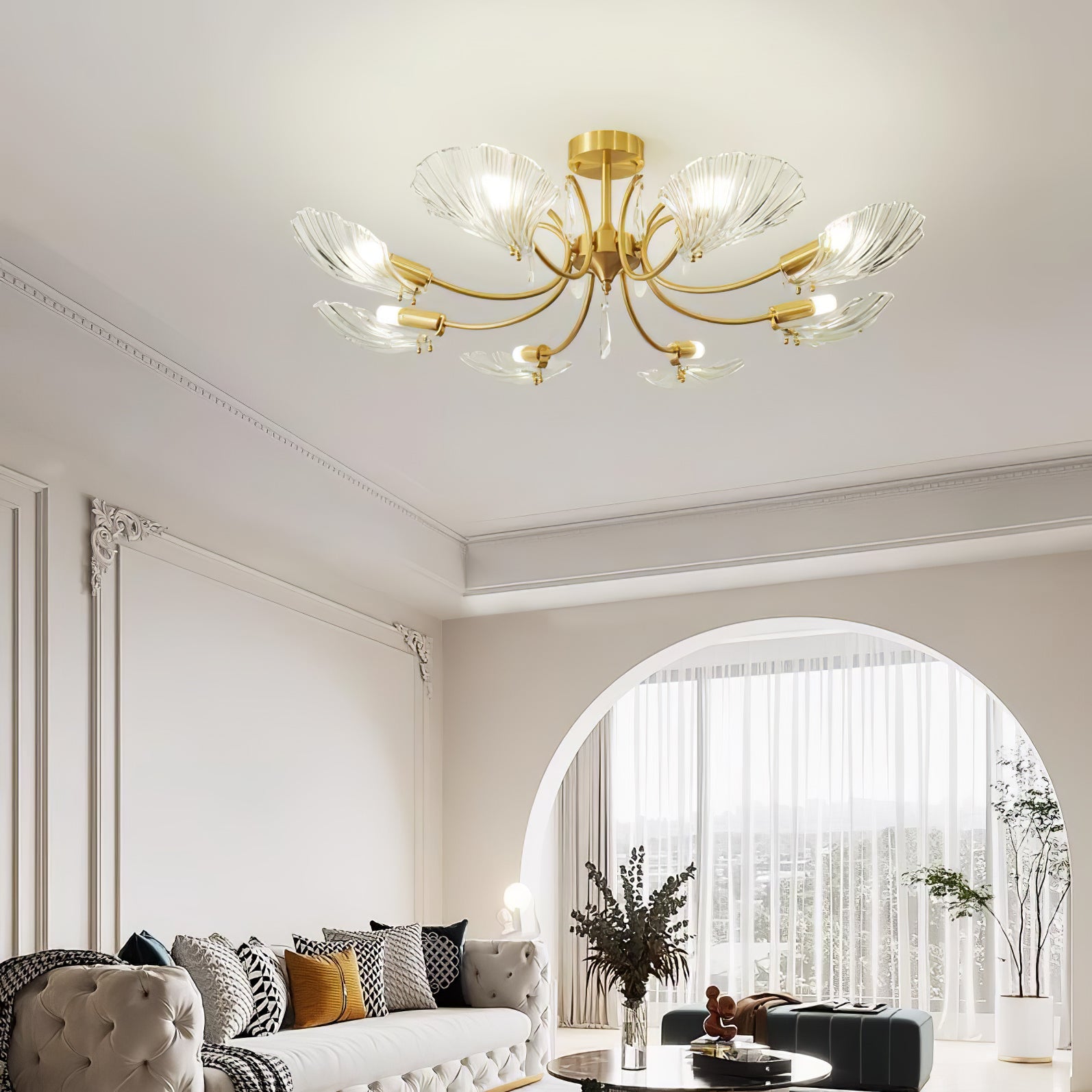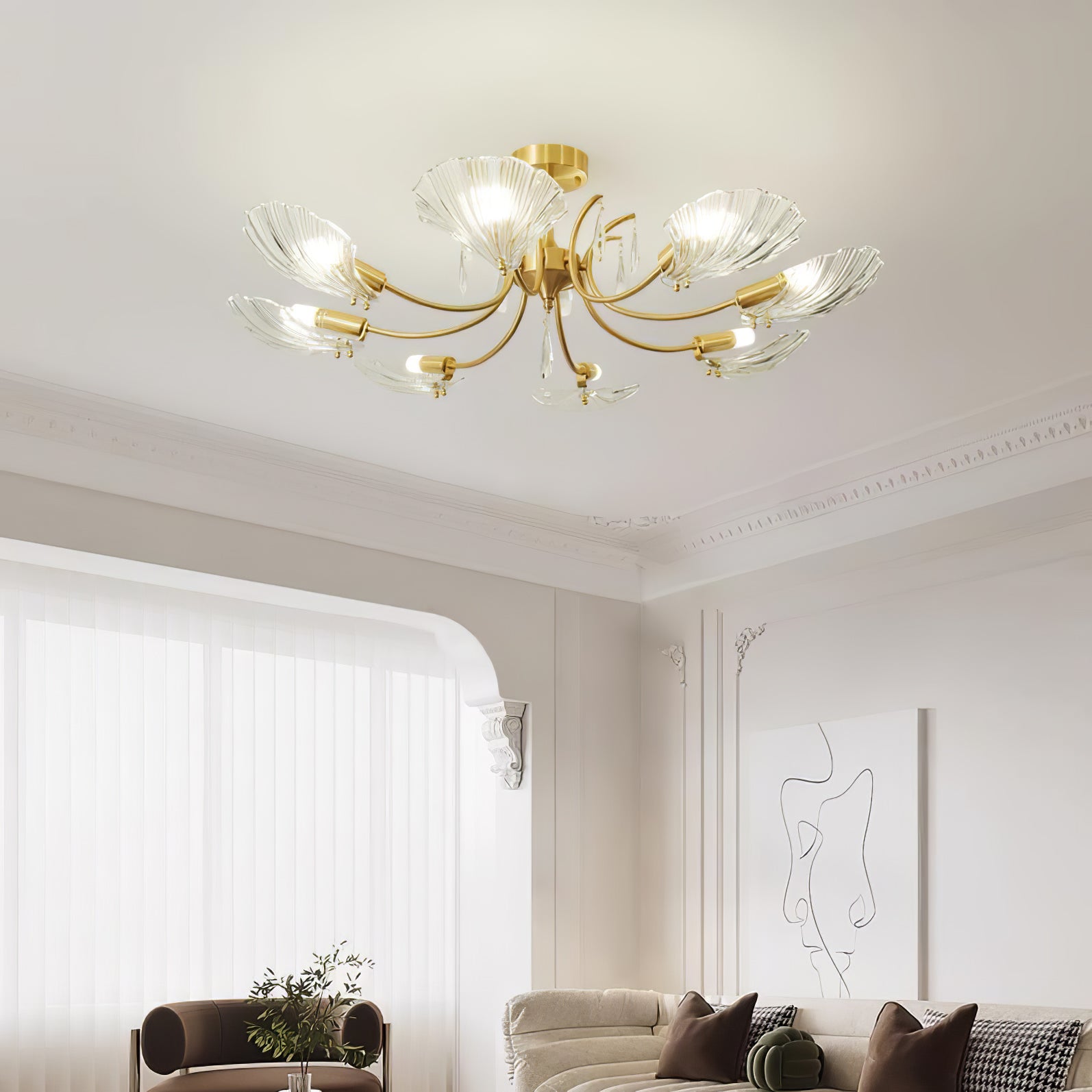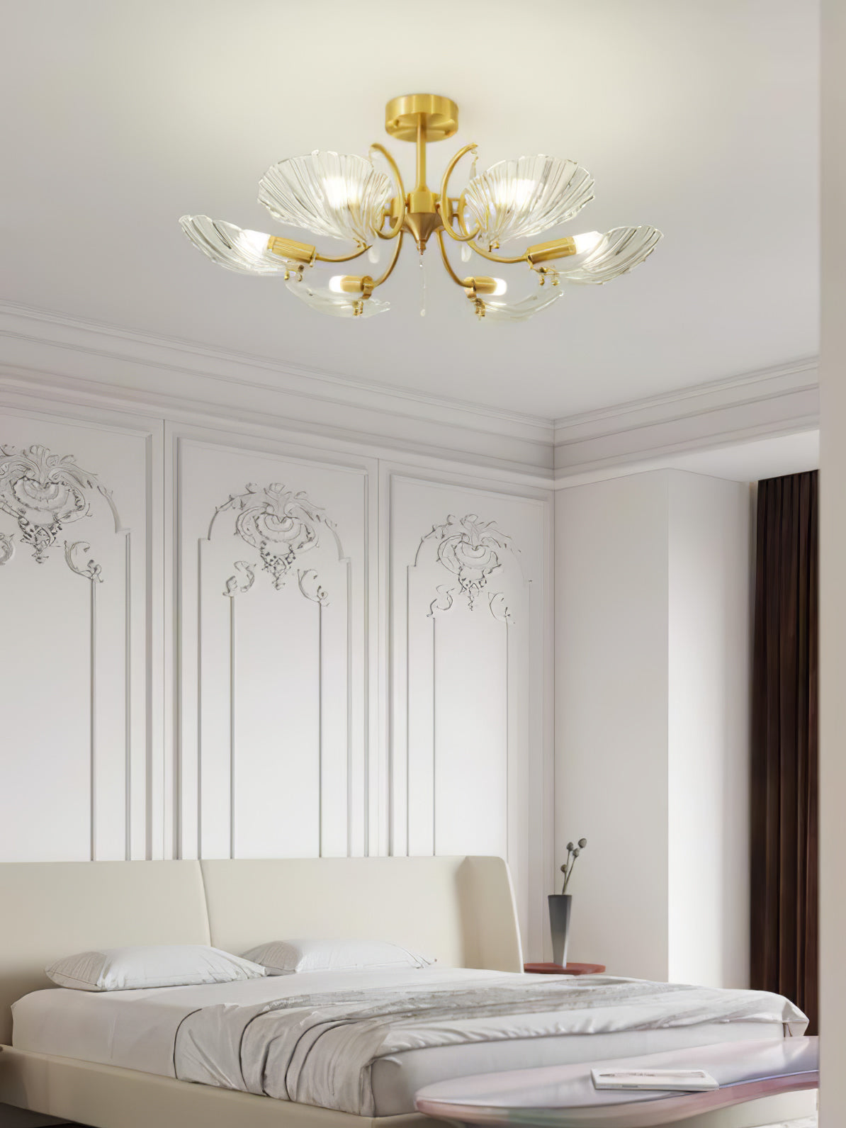 Tämä Shell Brass -kattolamppu on tyylikäs valaistusratkaisu kotiisi. Messinkisen rungon ja läpikuultavan kuoren muotoisen lampunvarjostimen ansiosta se on sekä tyylikäs että kestävä. Lampunvarjostin hajauttaa valoa tasaisesti luoden rennon tunnelman. Nauti lämpimästä, kauniista hehkusta missä tahansa huoneessa. Siinä on myös yksinkertainen, muodikas tukirakenne helppoa asennusta varten.