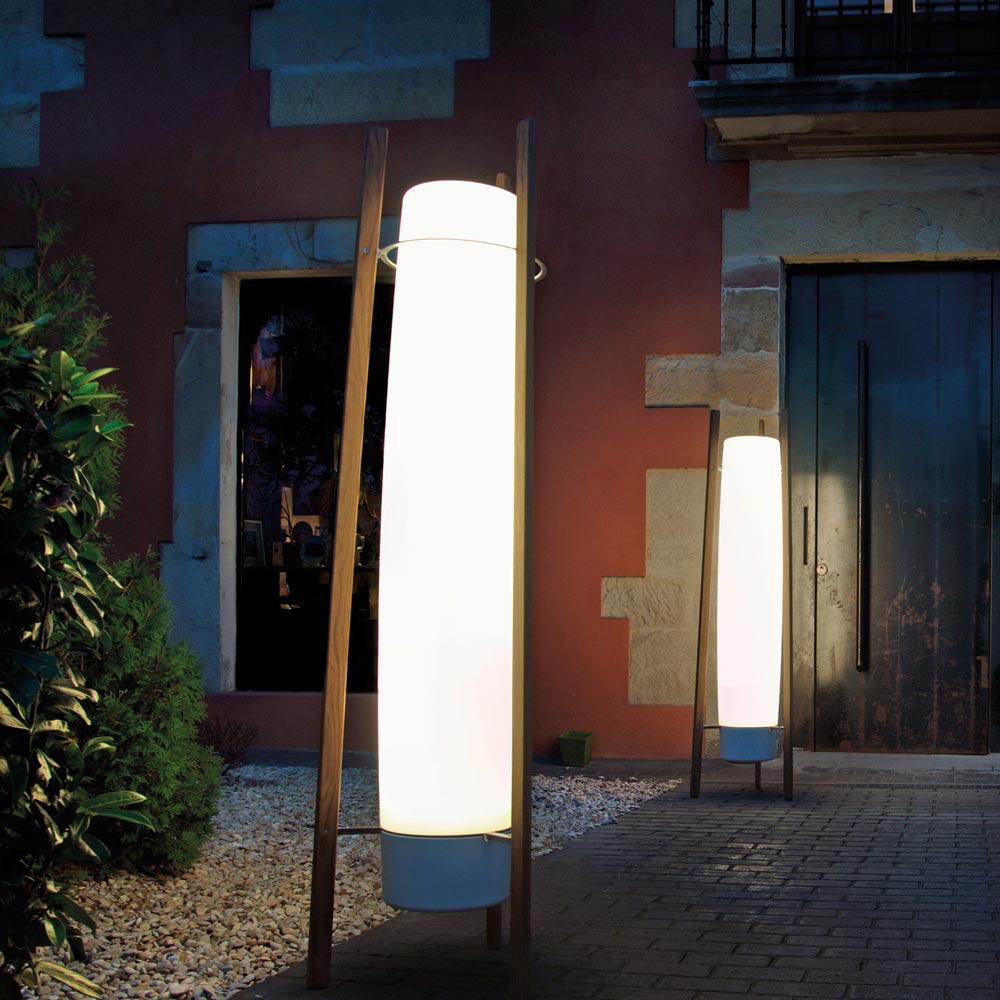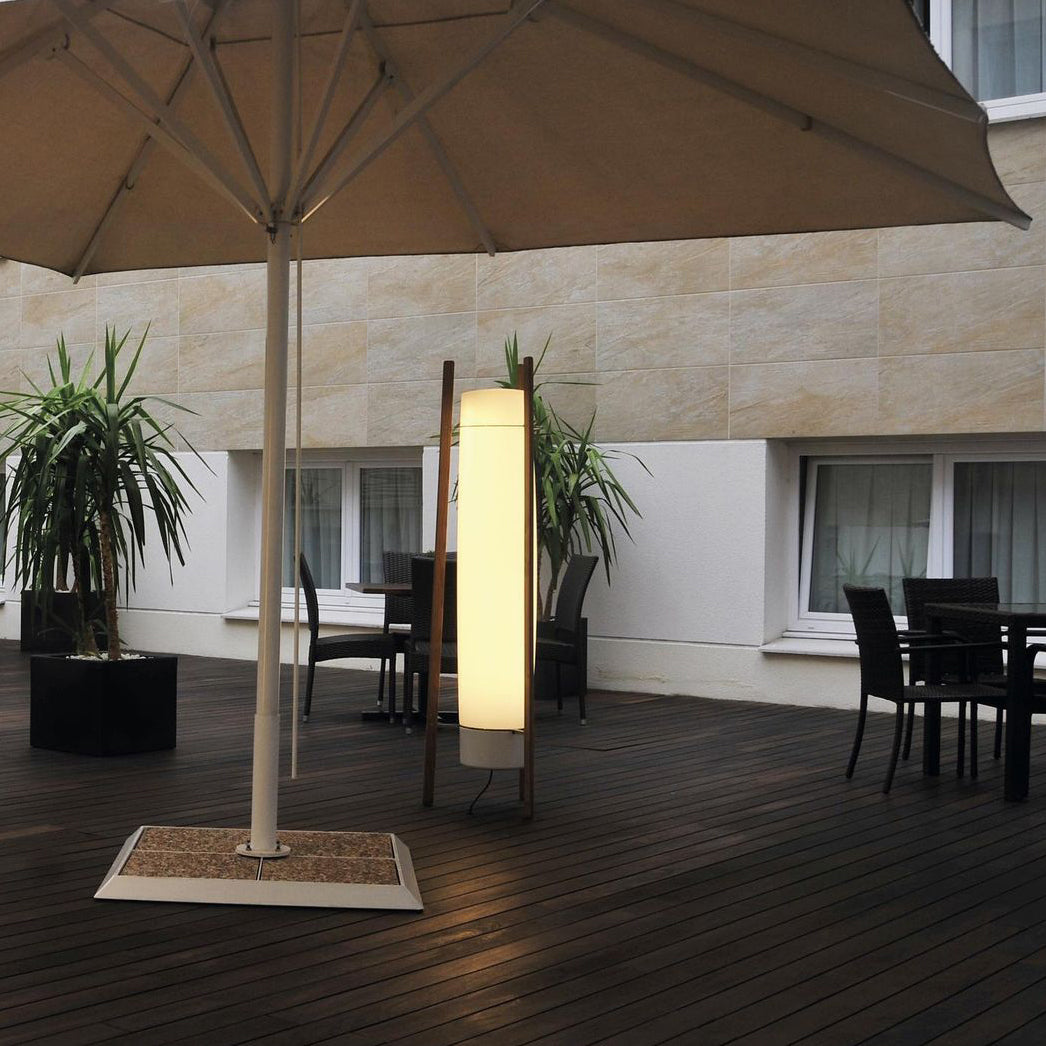 Side LED-lattiavalaisin sisältää pylväsvaikutteisen siluetin ja komean Zen-maisen ilmeen. Tämä energiatehokas lattiavalaisin on suunniteltu kestämään elementtejä, ja siinä on valkoinen varjostin, joka suojaa kolmessa muotoiltua puunauhaa ja antaa ulkotiloihin ihanan hehkun.