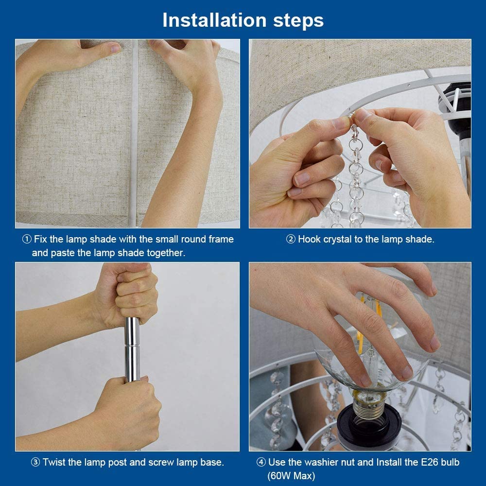 - Lampputangon korkeus on 64 tuumaa ja lampun kanta on metallia, paksu ja vakaa, loistava valaisin seisomaan olohuoneen tai lasten makuuhuoneen yläpuolelle, ei ole helppo pudota, tukee lampun runkoa ja turvallinen lapsille ja lemmikkieläimille.