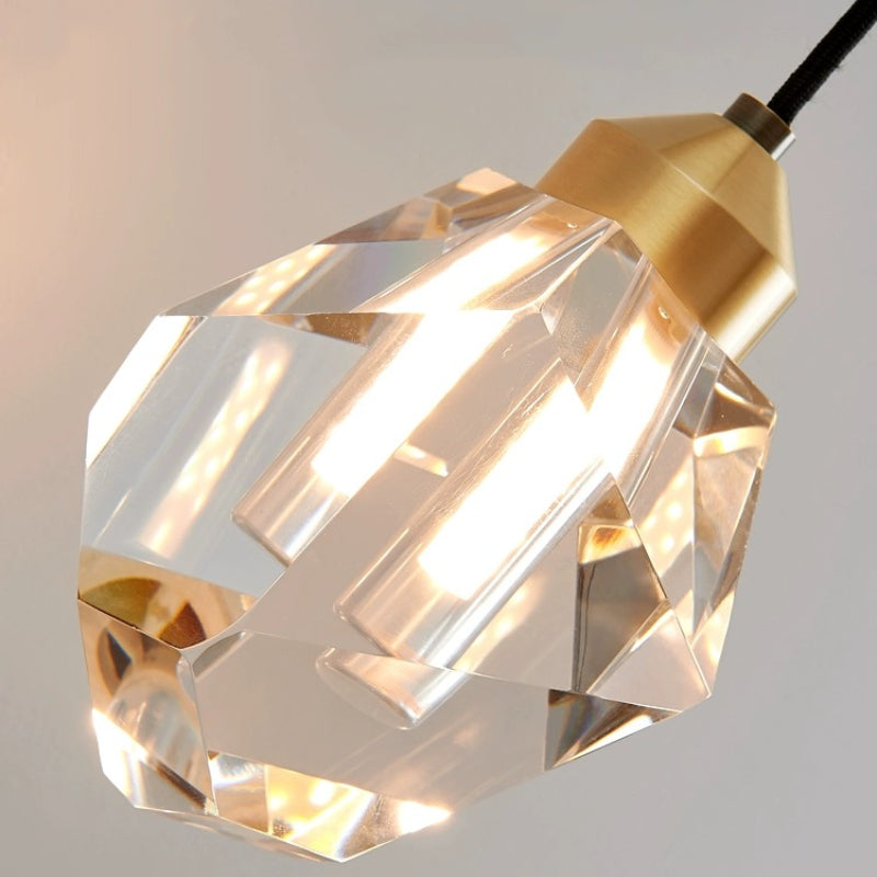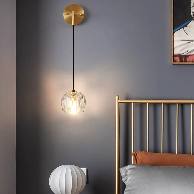 Sirmoinen pallomainen lampunvarjostin, joka muistuttaa ripustettuja kristallijalokiviä, kimaltelee loistoa ja esittelee jalouden tunnetta.