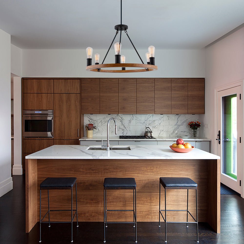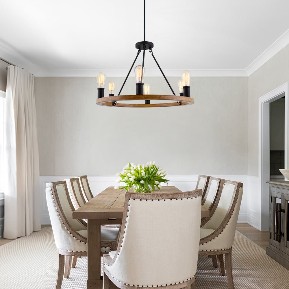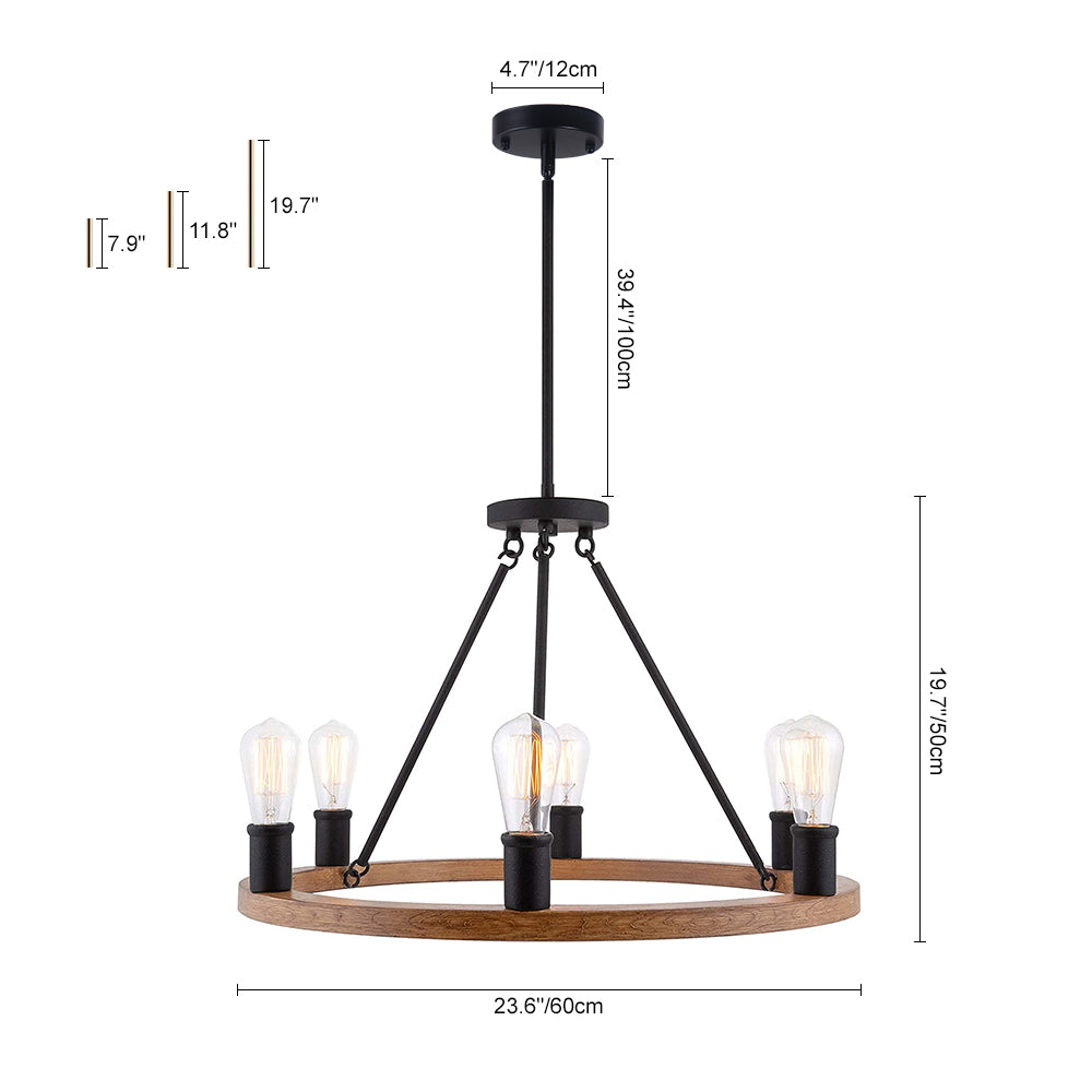 Kuusi valoa • Maalaistalo • Puumainen pyörä • E26/E27 Keskikantaiset polttimot (ei sisälly) • Kiinteä • UL-listattu/CE-listattu