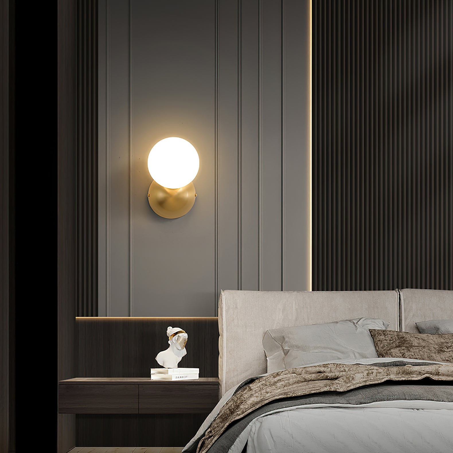 Single Globe -seinävalaisimemme on suunniteltu korostamaan sisustustasi. Valittavana on useita tyylejä, joten jokainen valaisin on suunniteltu hienostuneisuutta ja yksilöllisyyttä ajatellen. Nämä tyylikkäät ja modernit seinävalaisimet tuovat kotiisi modernin ja ylellisen ilmeen. Kauniisti viimeistellyt messinkivalaisimemme lisäävät lämpöä mihin tahansa huoneeseen, ja mattamusta viimeistely on täydellinen kosketus unelmiesi teolliseen sisustukseen.