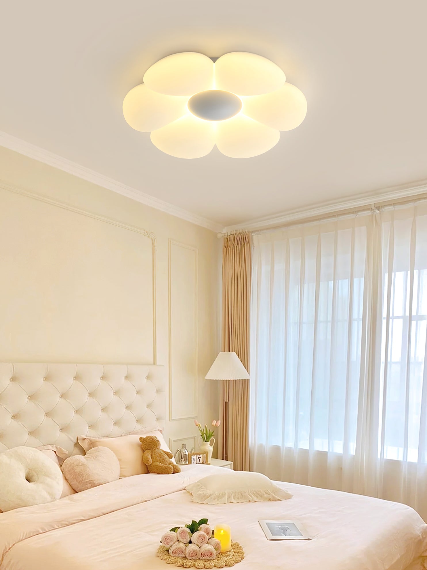 Tämä Blooming Flower Ceiling Lamp on toinen uutuus Moonlight studiolta, joka antaa tyylikkään ja romanttisen koristeellisen vaikutelman. Koko ja muotoilu tekevät tästä korostusvalaisimesta erinomaisen lisävarusteen makuuhuoneisiin ja ruokailutiloihin, ja se eroaa yksinkertaisesta elämäntilanteesta ja kuvaa hyvää elämää.