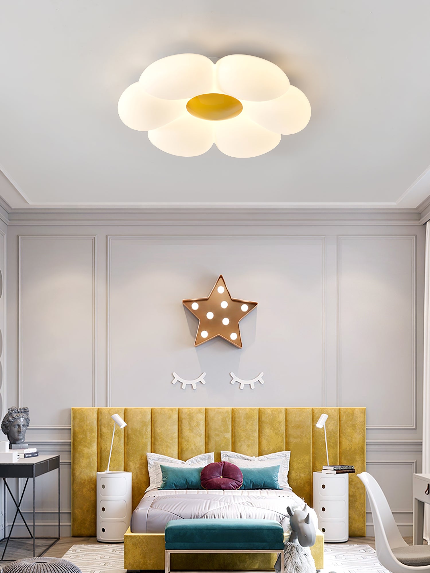 Kuusilehtinen kukka lastenhuoneen kattovalaisin