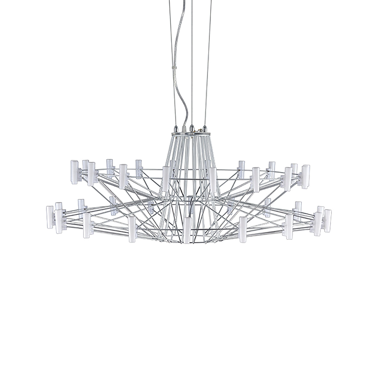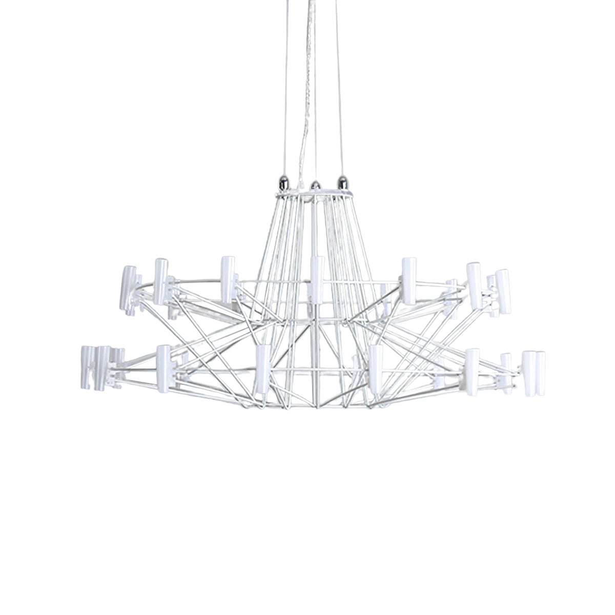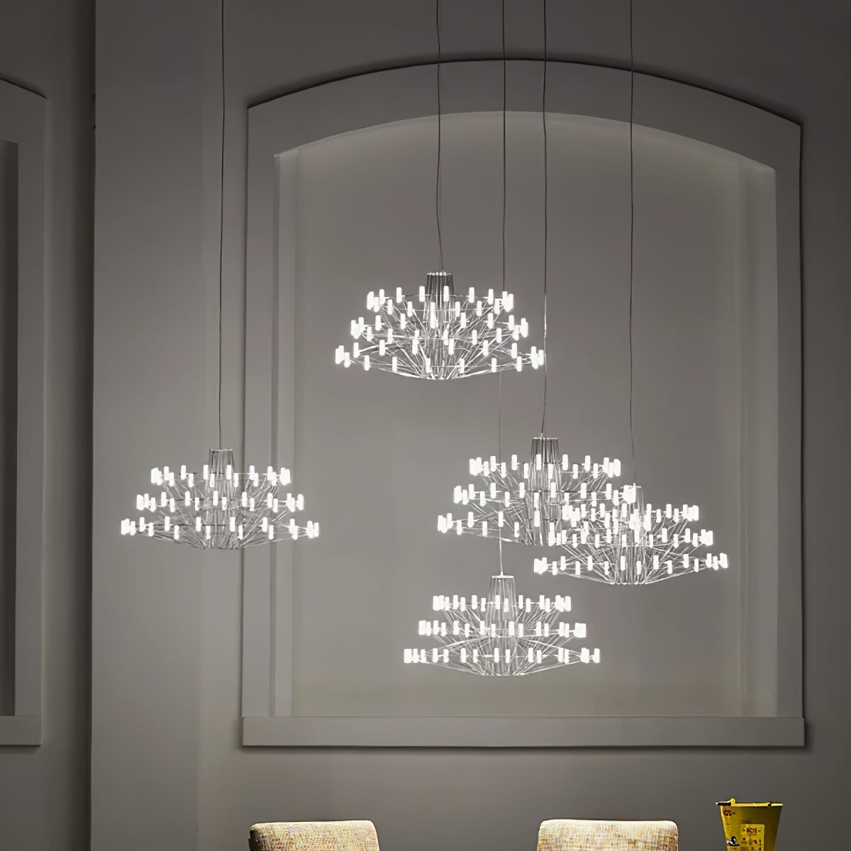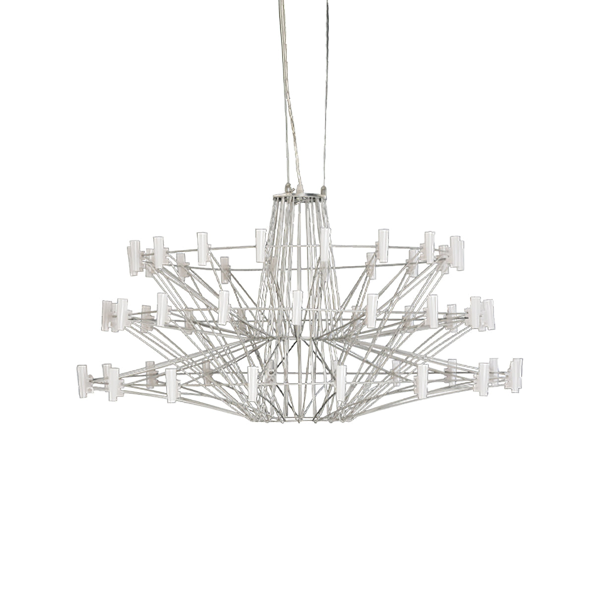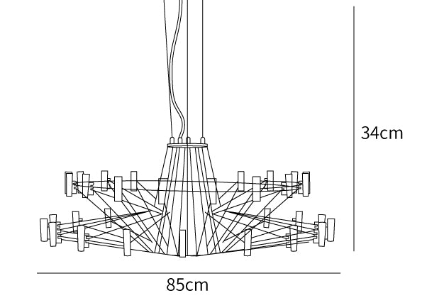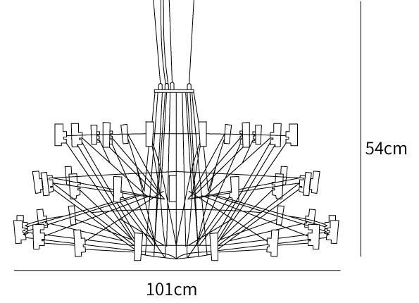 The Sky Ballet Chandelier on kaunis valaisin, joka on valmistettu ruostumattomasta teräksestä ja akryylistä. Sen klassinen muotoilu lisää ripauksen eleganssia mihin tahansa tilaan, kun taas sen ilmava rakenne antaa silti runsaasti valoa virrata valoisaa tunnelmaa. Nauti ainutlaatuisesta ilmaisukappaleesta missä tahansa huoneessa.