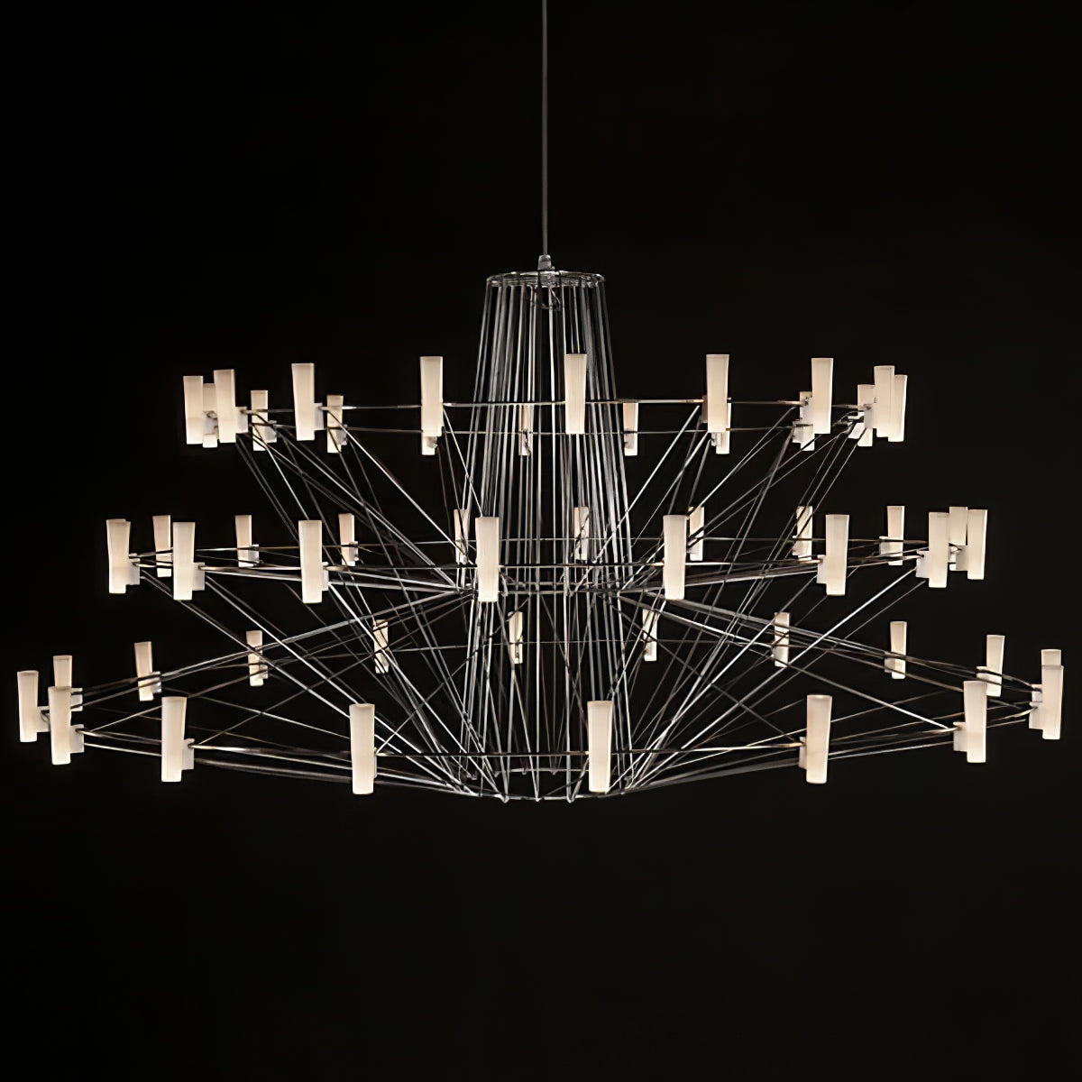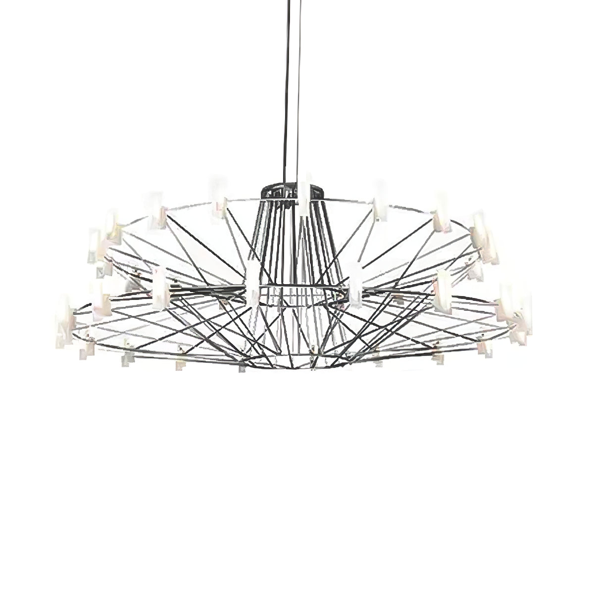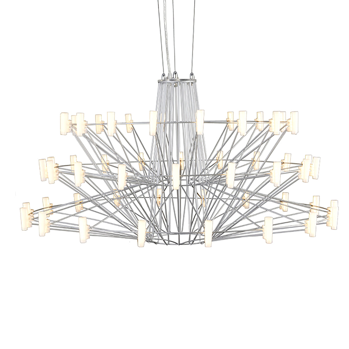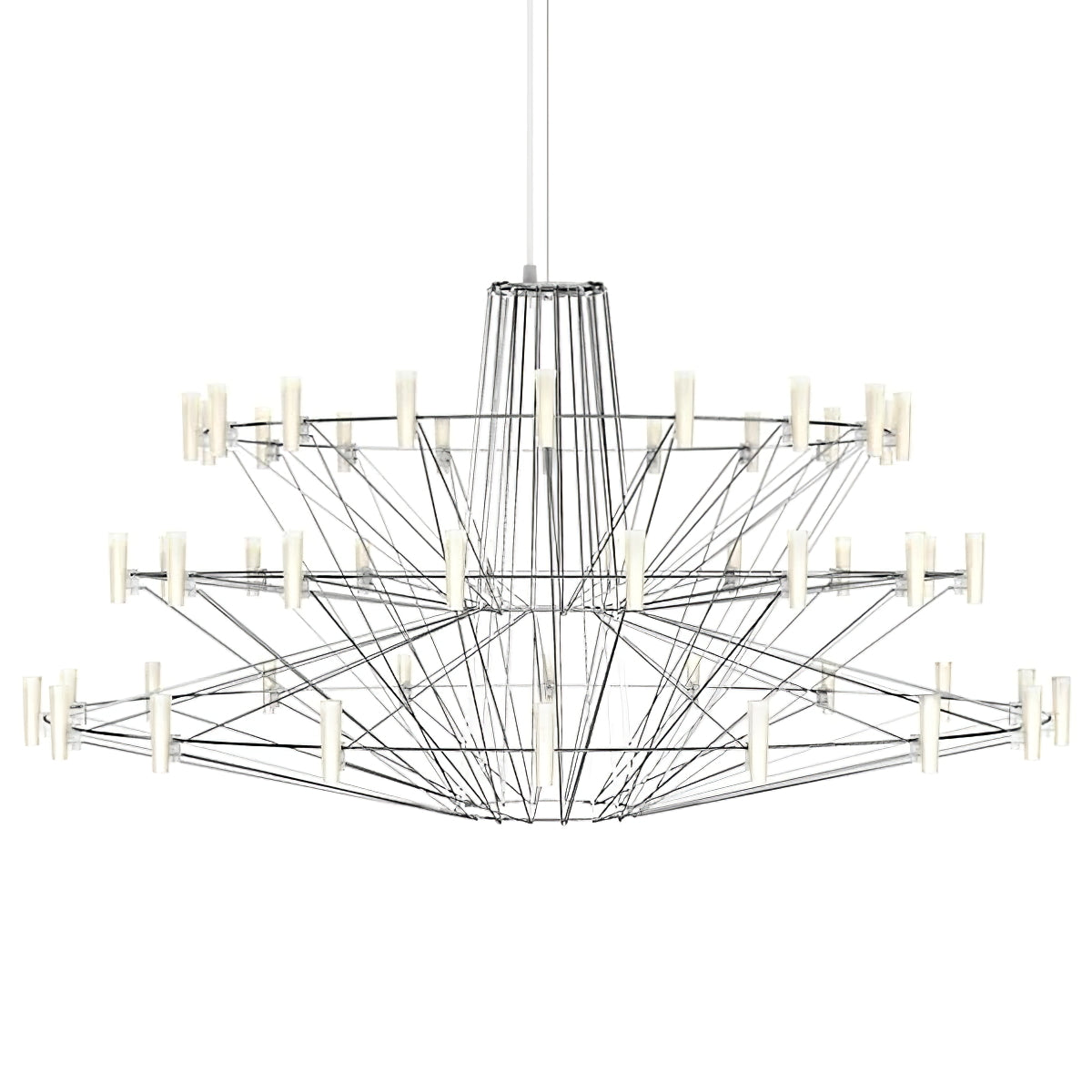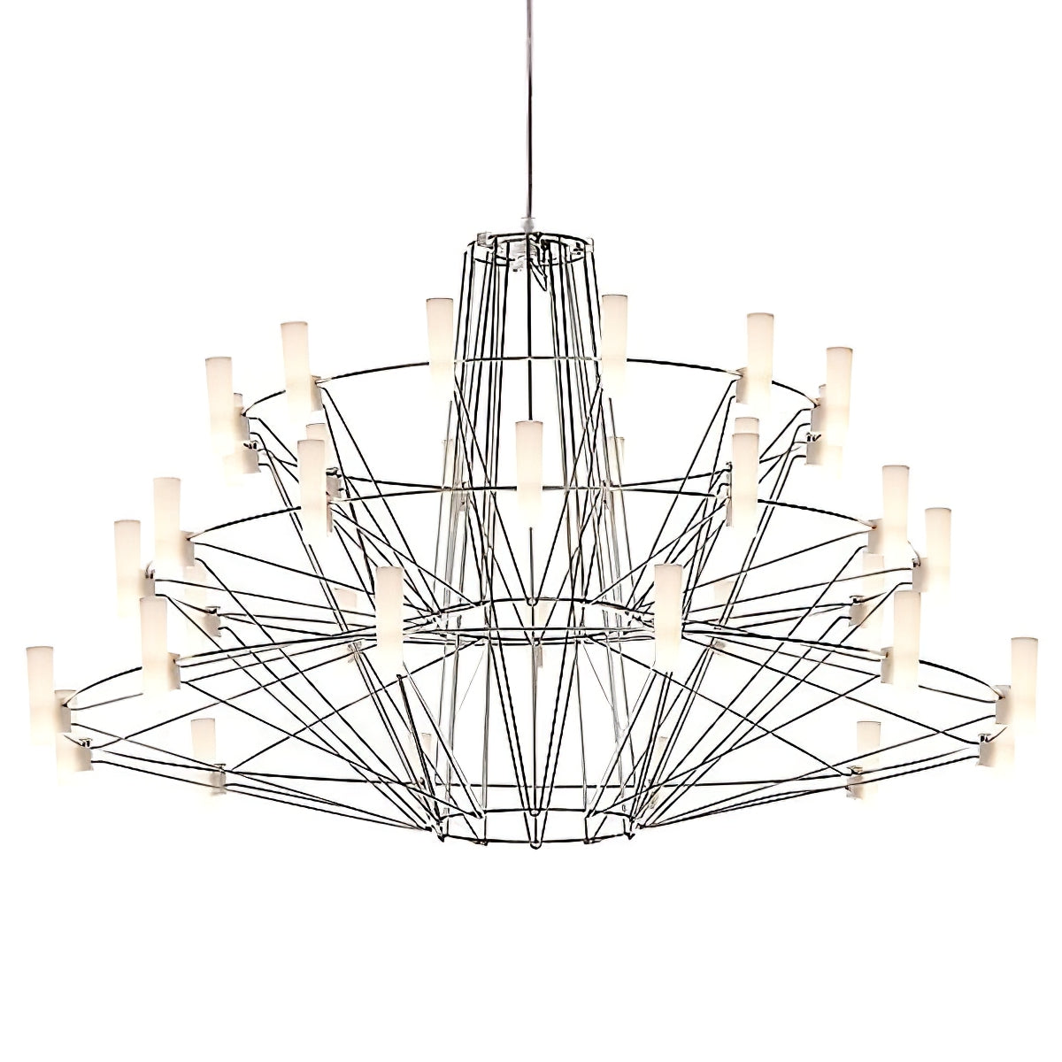 The Sky Ballet Chandelier on kaunis valaisin, joka on valmistettu ruostumattomasta teräksestä ja akryylistä. Sen klassinen muotoilu lisää ripauksen eleganssia mihin tahansa tilaan, kun taas sen ilmava rakenne antaa silti runsaasti valoa virrata valoisaa tunnelmaa. Nauti ainutlaatuisesta ilmaisukappaleesta missä tahansa huoneessa.