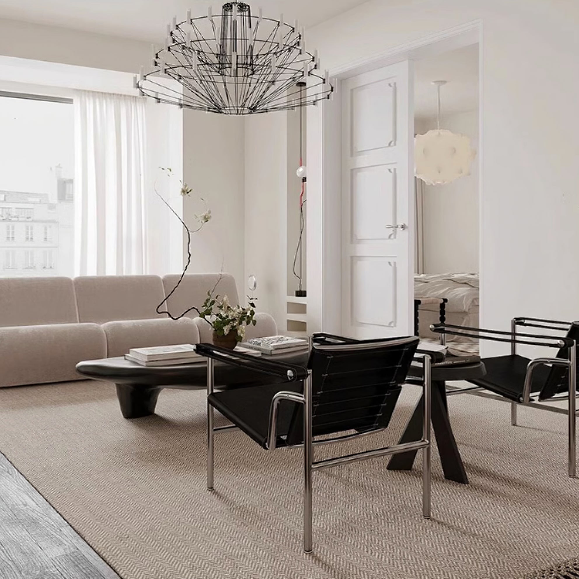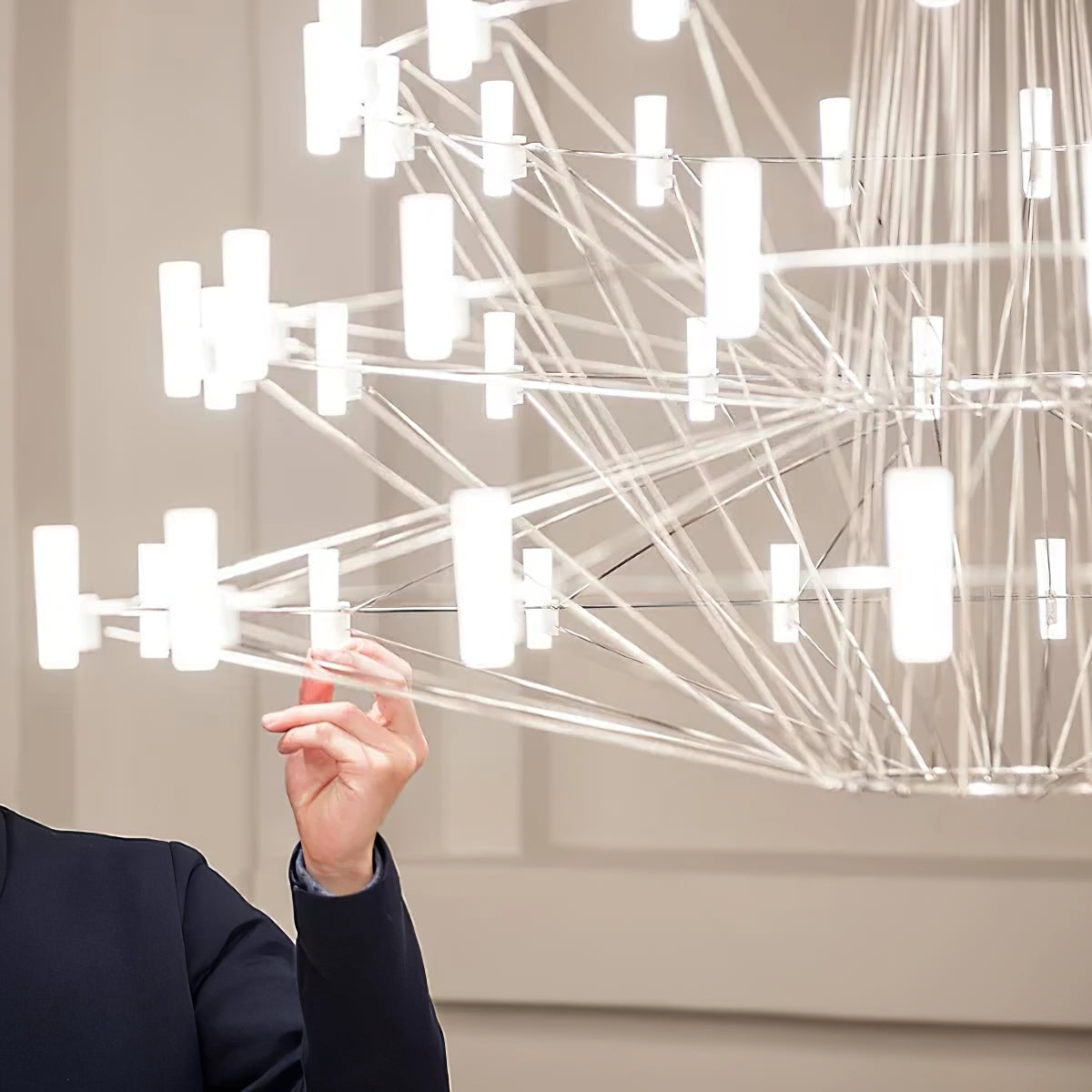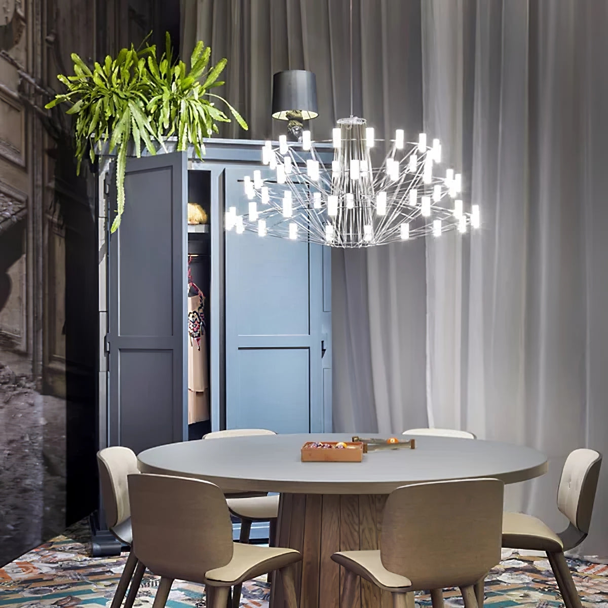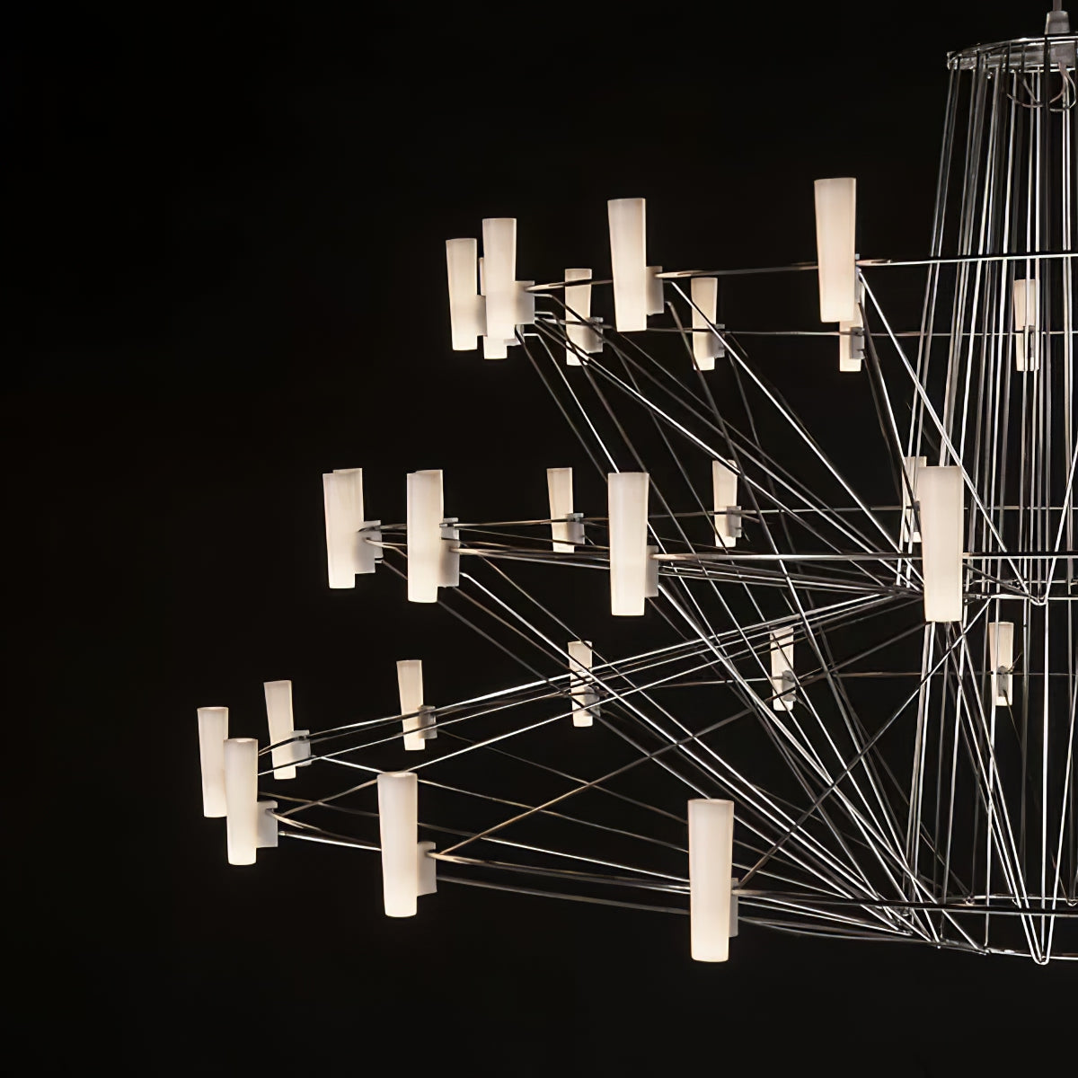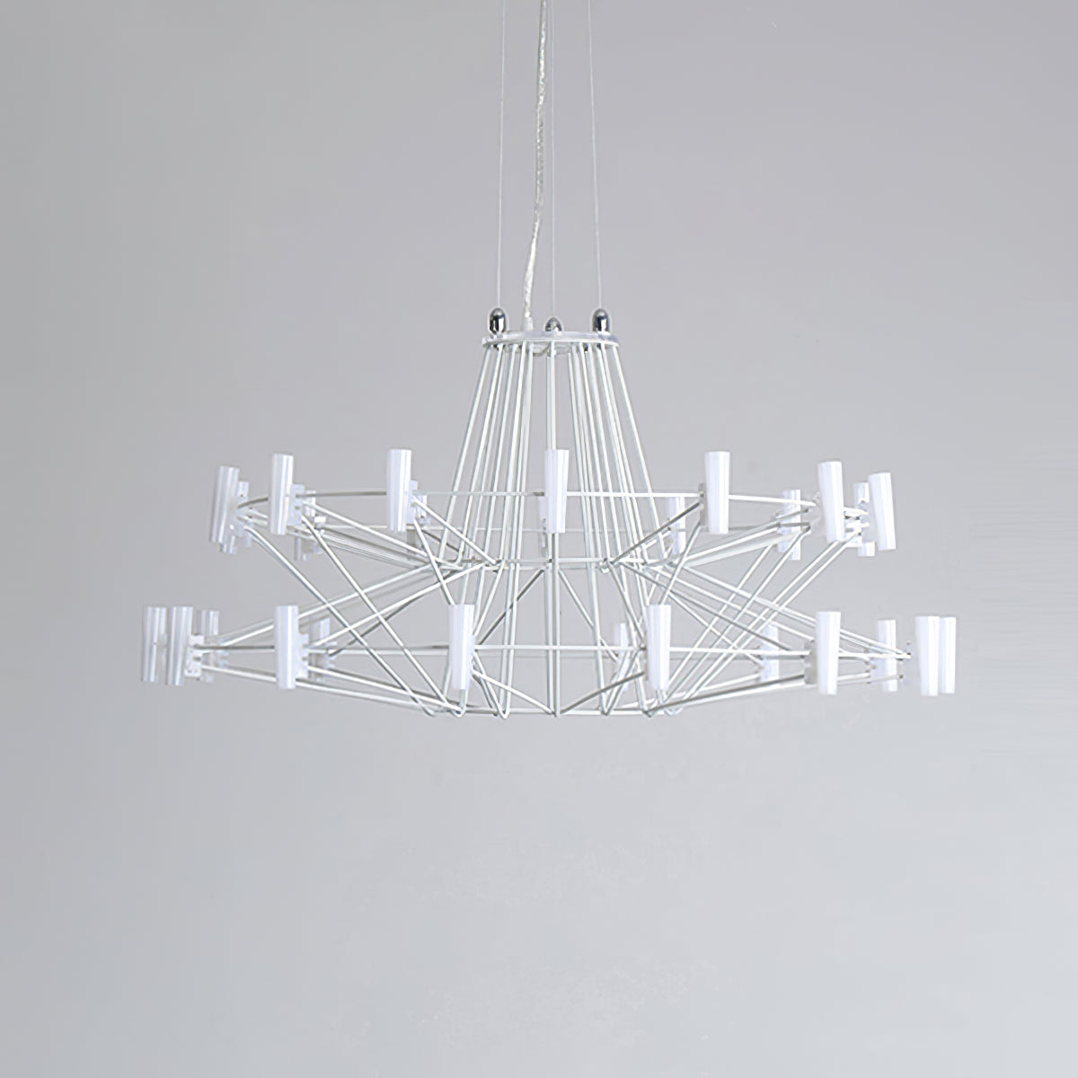The Sky Ballet Chandelier on kaunis valaisin, joka on valmistettu ruostumattomasta teräksestä ja akryylistä. Sen klassinen muotoilu lisää ripauksen eleganssia mihin tahansa tilaan, kun taas sen ilmava rakenne antaa silti runsaasti valoa virrata valoisaa tunnelmaa. Nauti ainutlaatuisesta ilmaisukappaleesta missä tahansa huoneessa.