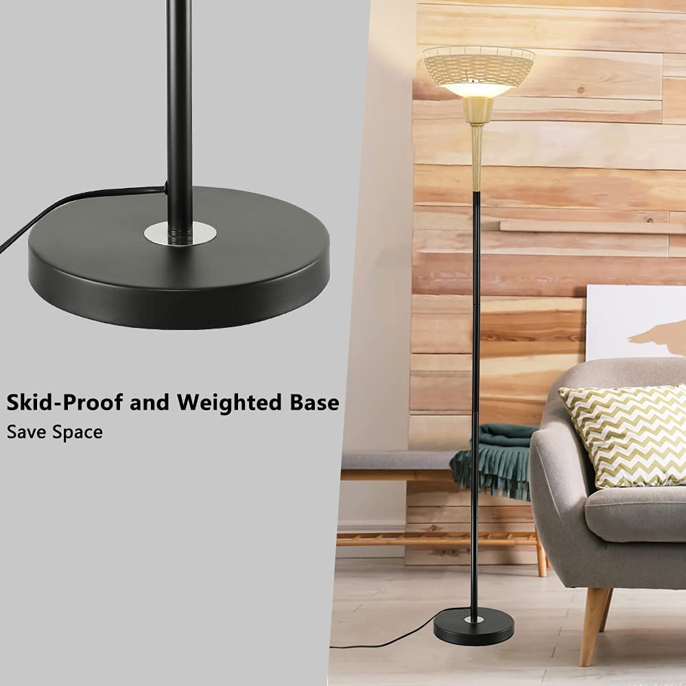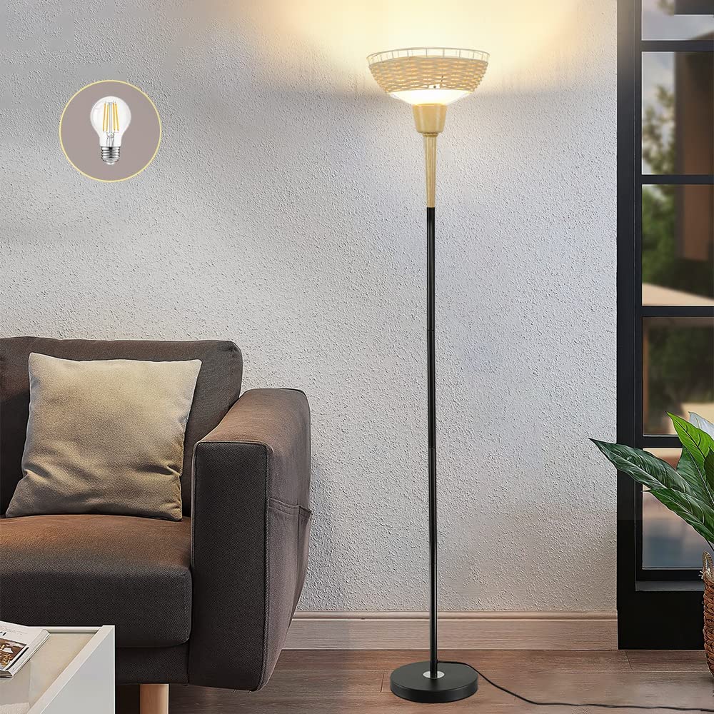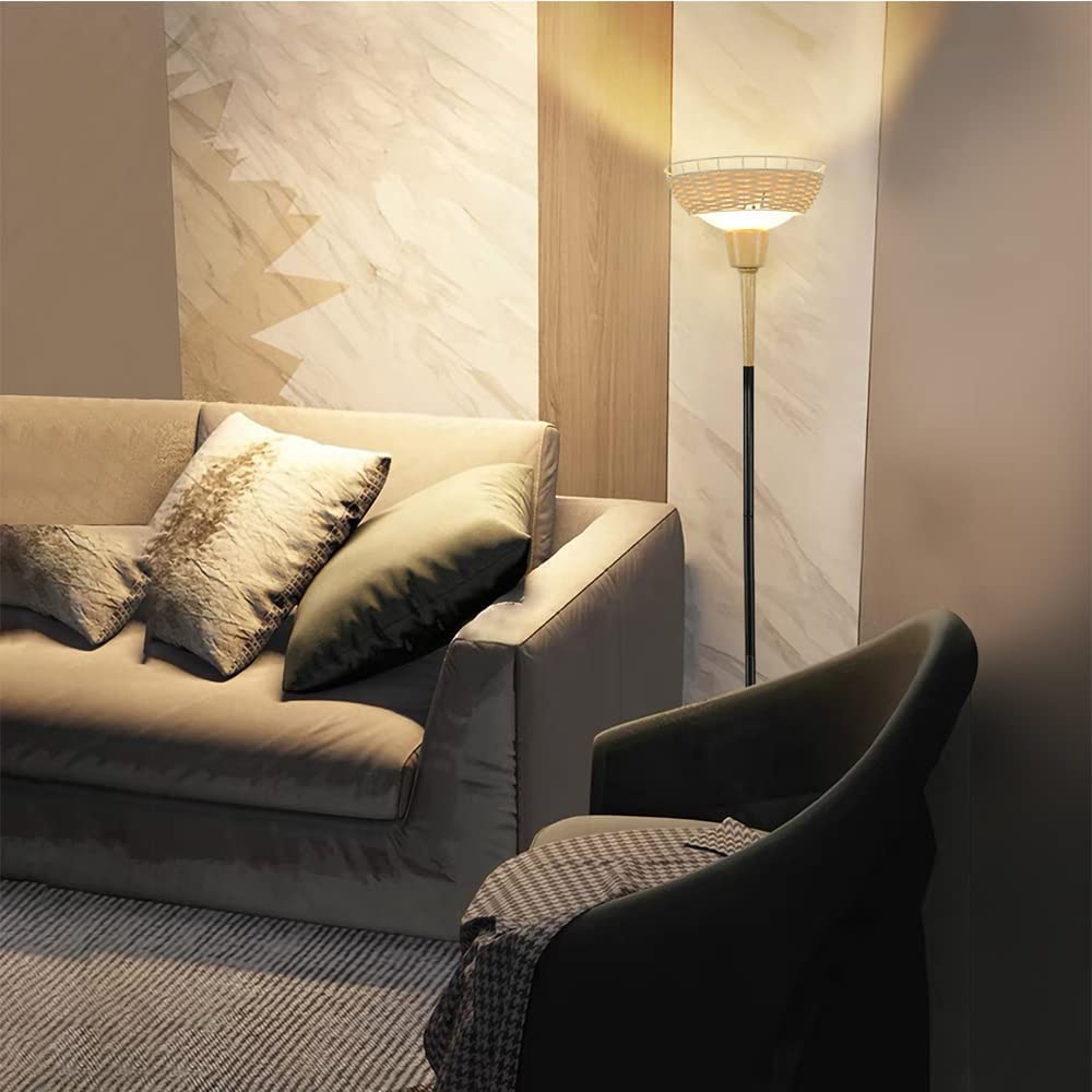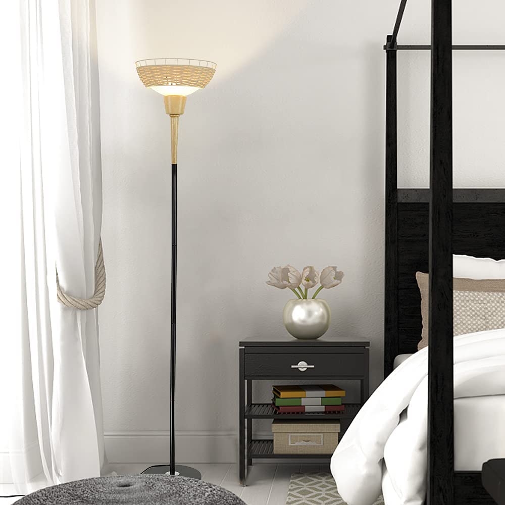 Depuley Sky LED Torchiere seisova lattiavalaisin, moderni 69 tuuman korkea napavalaisin rottinki- ja lasivarjostimella, ylävalaisimet olohuoneeseen makuuhuoneen toimistoon, 9W 3000K