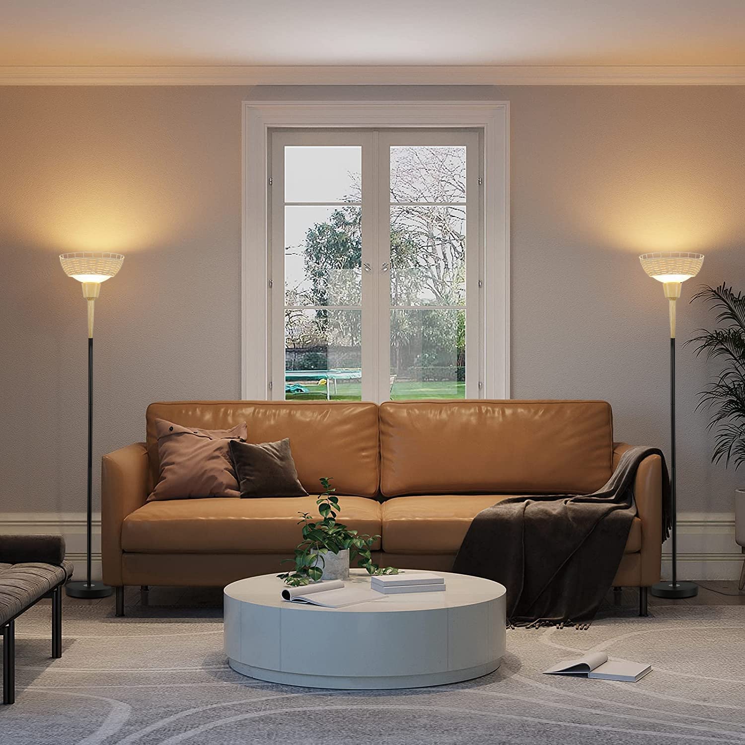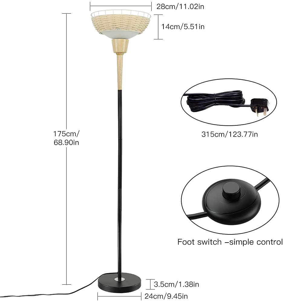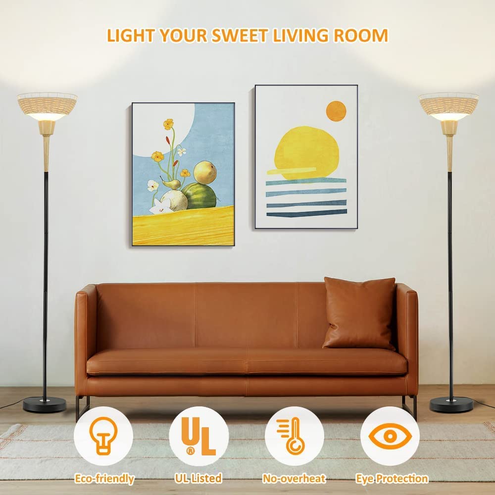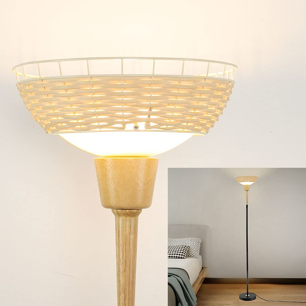 Depuley Sky LED Torchiere seisova lattiavalaisin, moderni 69 tuuman korkea napavalaisin rottinki- ja lasivarjostimella, ylävalaisimet olohuoneeseen makuuhuoneen toimistoon, 9W 3000K