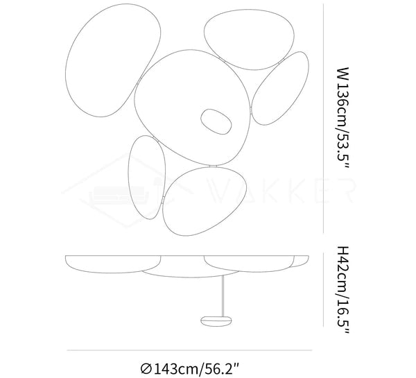 Kattovalo, Hydro-sarjan jatkokehitys. Sarja kiviä muodostaa kirkkaan taivaan, joka heijastaa valoa, joka kimpoaa sen biomorfisista pinnoista. Tämä kattoon asennettava valaisin on ihanteellinen epäsuoraan halogeenivalaistukseen. Tämä kivisarja muodostaa kirkkaan taivaan, joka heijastaa valoa, joka kimpoaa sen biomorfisista pinnoista. Skydro koostuu heijastavista yksiköistä (kivistä), jotka on valmistettu muovista, kiillotetulla kromipinnoitteella.