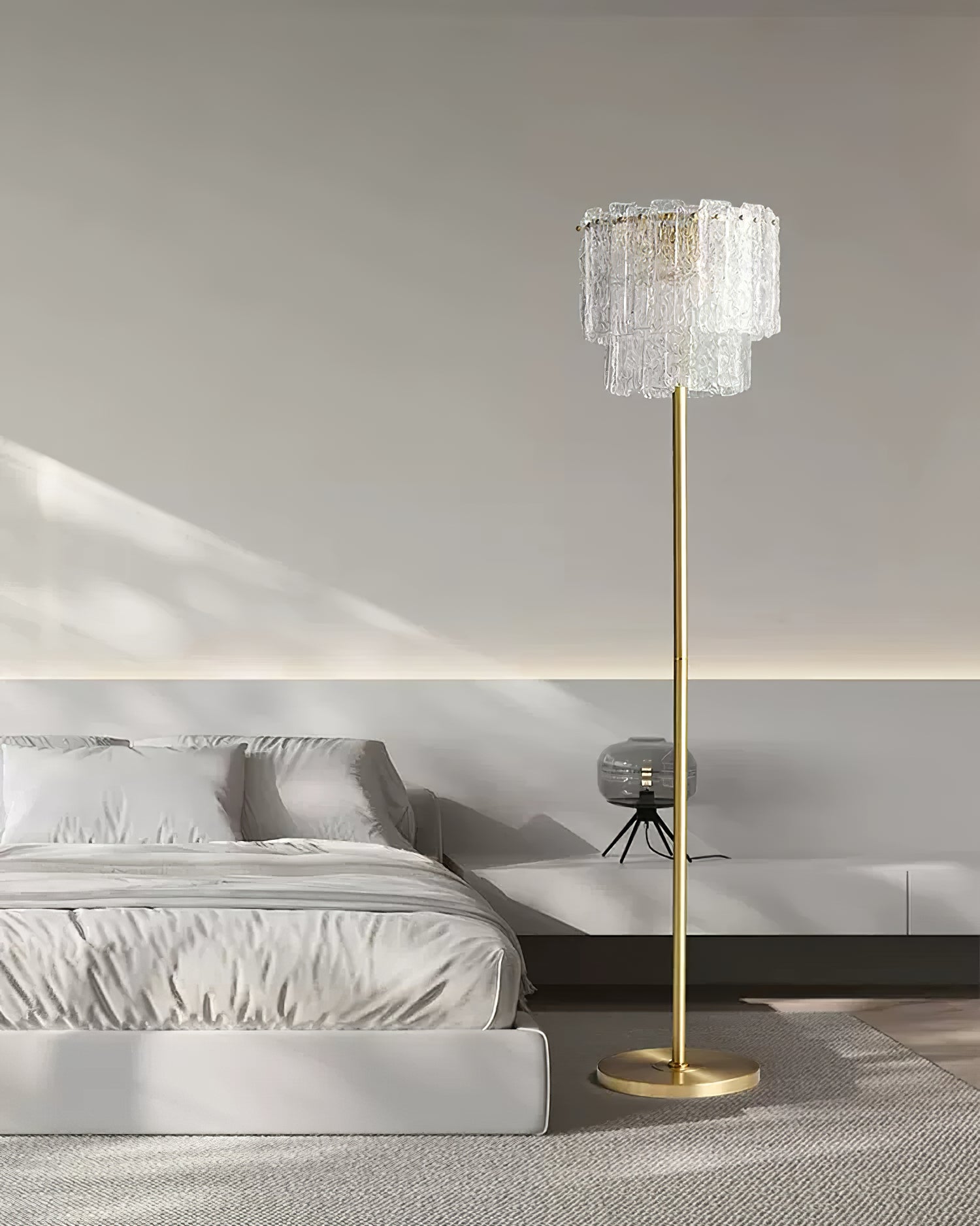 Skylar Floor Lamp on upea lasi- ja messinkilamppu, joka on "yksi miljoonasta". Se on suunniteltu tekemään vaikutuksen, ja se tuo erityistä viehätystä ja hienostuneita valaistusyksityiskohtia hienoimpiin sisätiloihin. Taiteellisesti toteutettu valaisin on valmistettu messingistä, jossa on viimeistelty, visuaalisesti lumoava lasi.