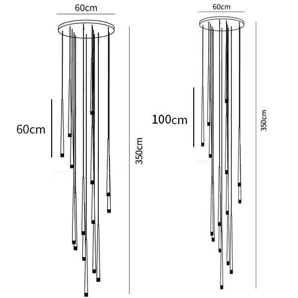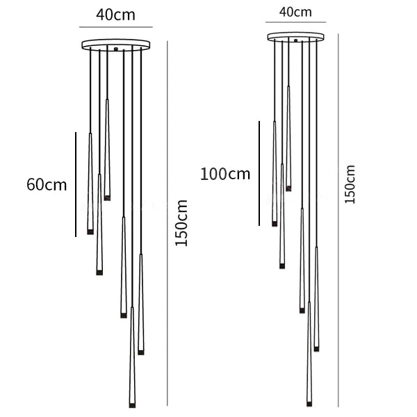 Slender Cone Chandelier on kokoelma myymälämme suunnittelemia riippuvalaisimia. Slender Cone -kattokruunu on hienostunut ja hoikka, ja siinä on miellyttävä korostusvalaistus.