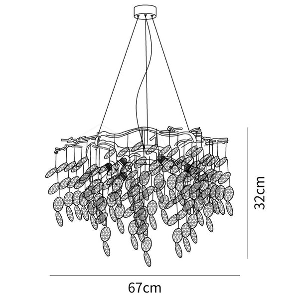Sofian pyöreäoksainen kattokruunu on moderni tyyli ja kultaiset oksat valaistaan LED-valoilla. Käytä sitä olohuoneessasi ja ruokasalissasi tai viimeistele makuuhuoneesi tällä upealla kultaisella oksakruunulla.