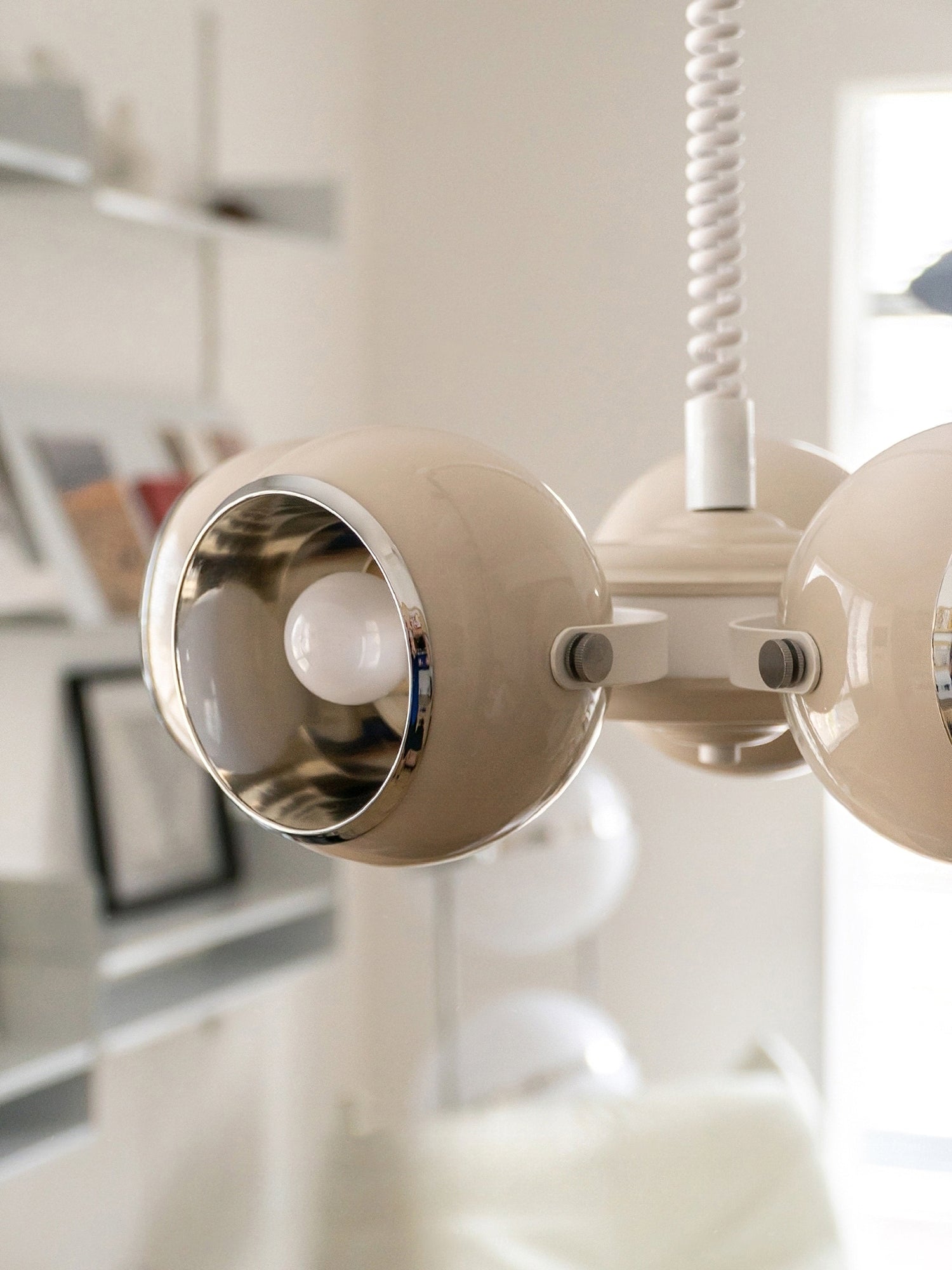Tyylikkäällä ja futuristisella siluettillaan Space Age -riippuvalaisin vangitsee vaivattomasti huomion ja siitä tulee keskipiste missä tahansa huoneessa. Valaisin on saatavana kahdessa valloittavassa värissä: hienostunut beigen sävy ja rohkea ja kirkas punainen, joten voit valita sen, joka sopii parhaiten henkilökohtaiseen tyyliisi ja täydentää nykyistä sisustusta.