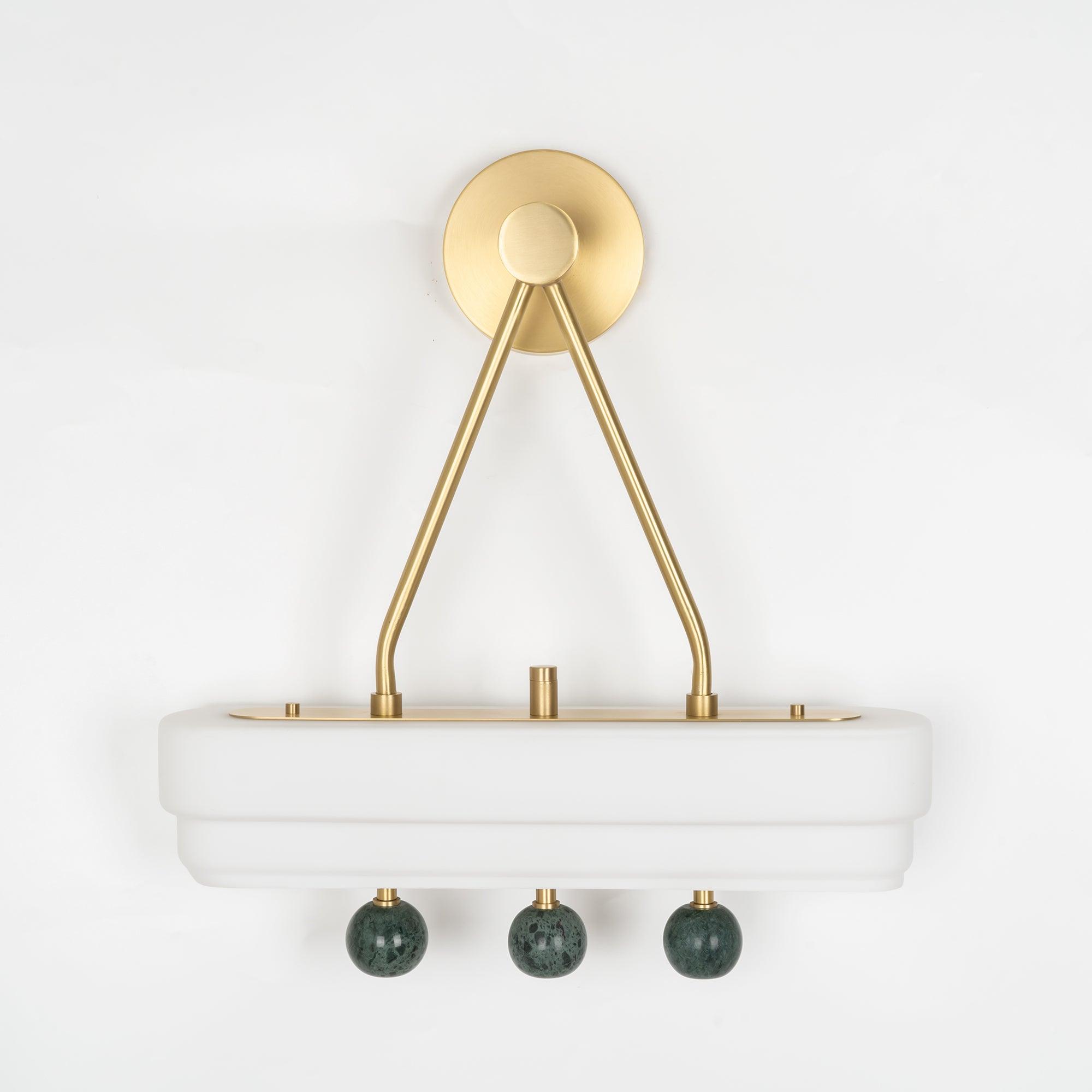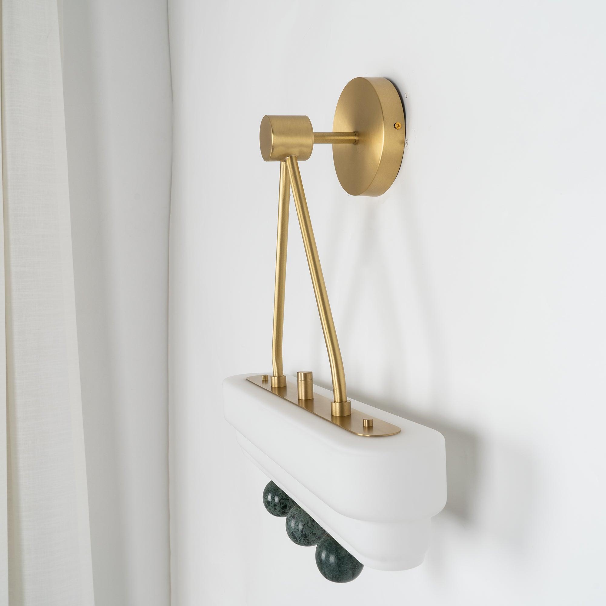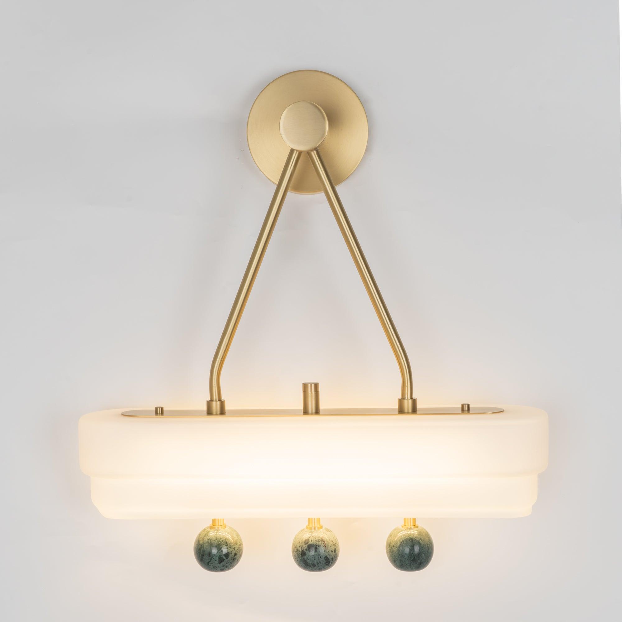 Spate Wall Light tuo Art Deco -tyyliin nokkauksen ainutlaatuisella, opaalihapolla syövytetyllä lasivarjostimella ja kahdella kimaltelevalla marmoripallolla. Se on täydellinen lisä mihin tahansa asuintiloihin.