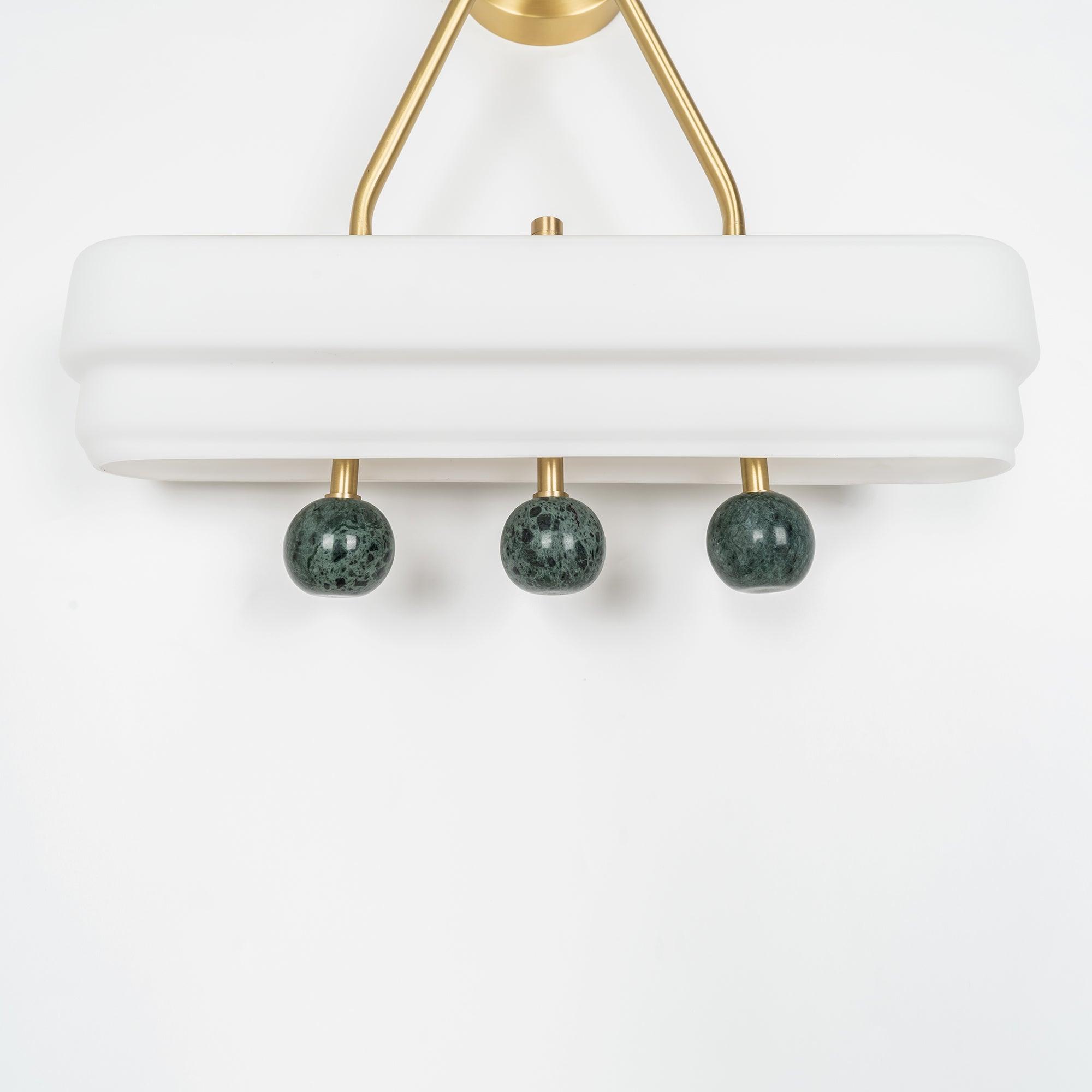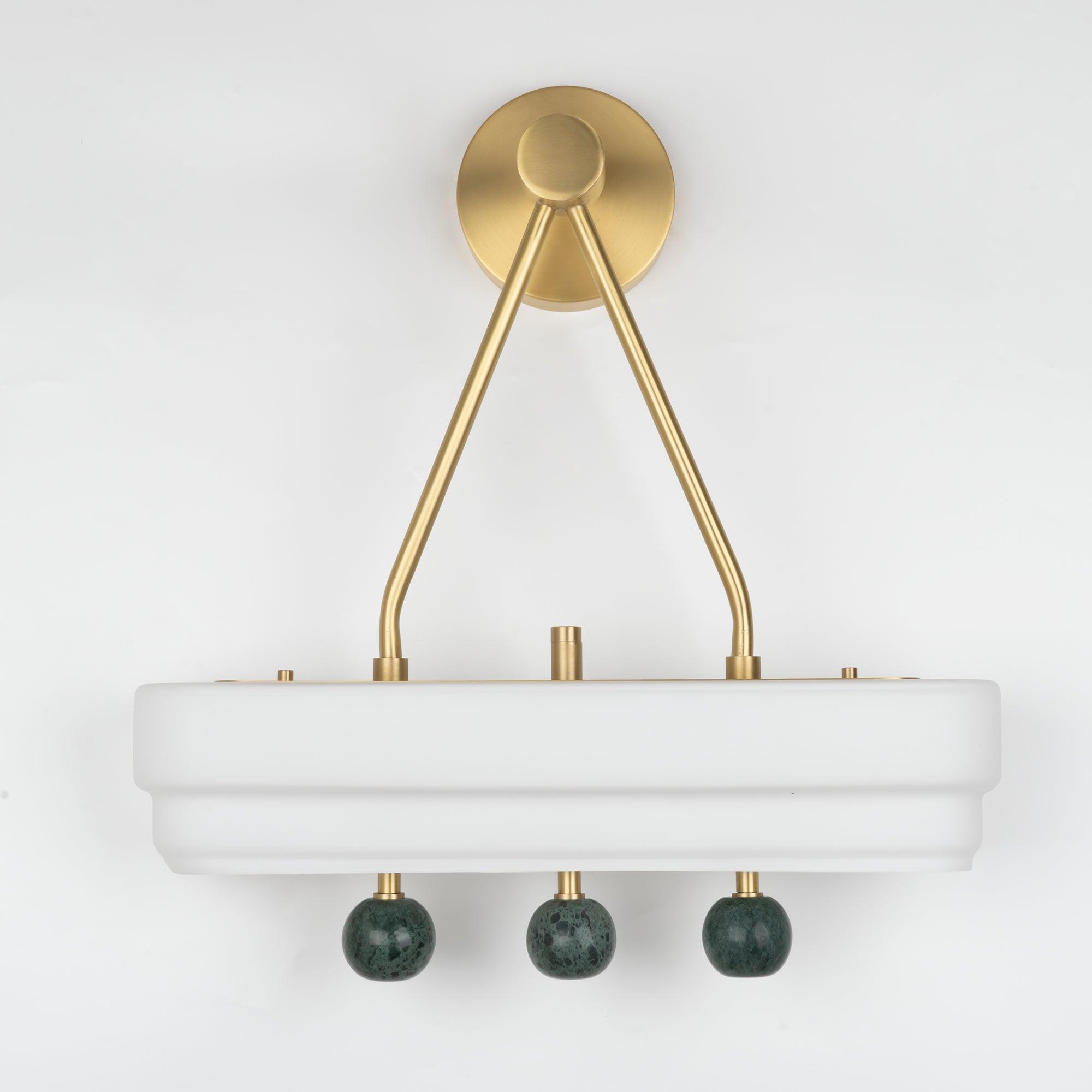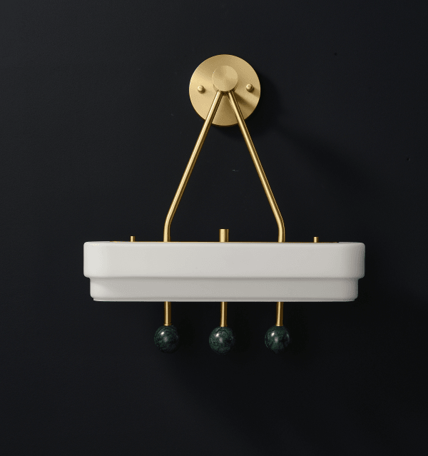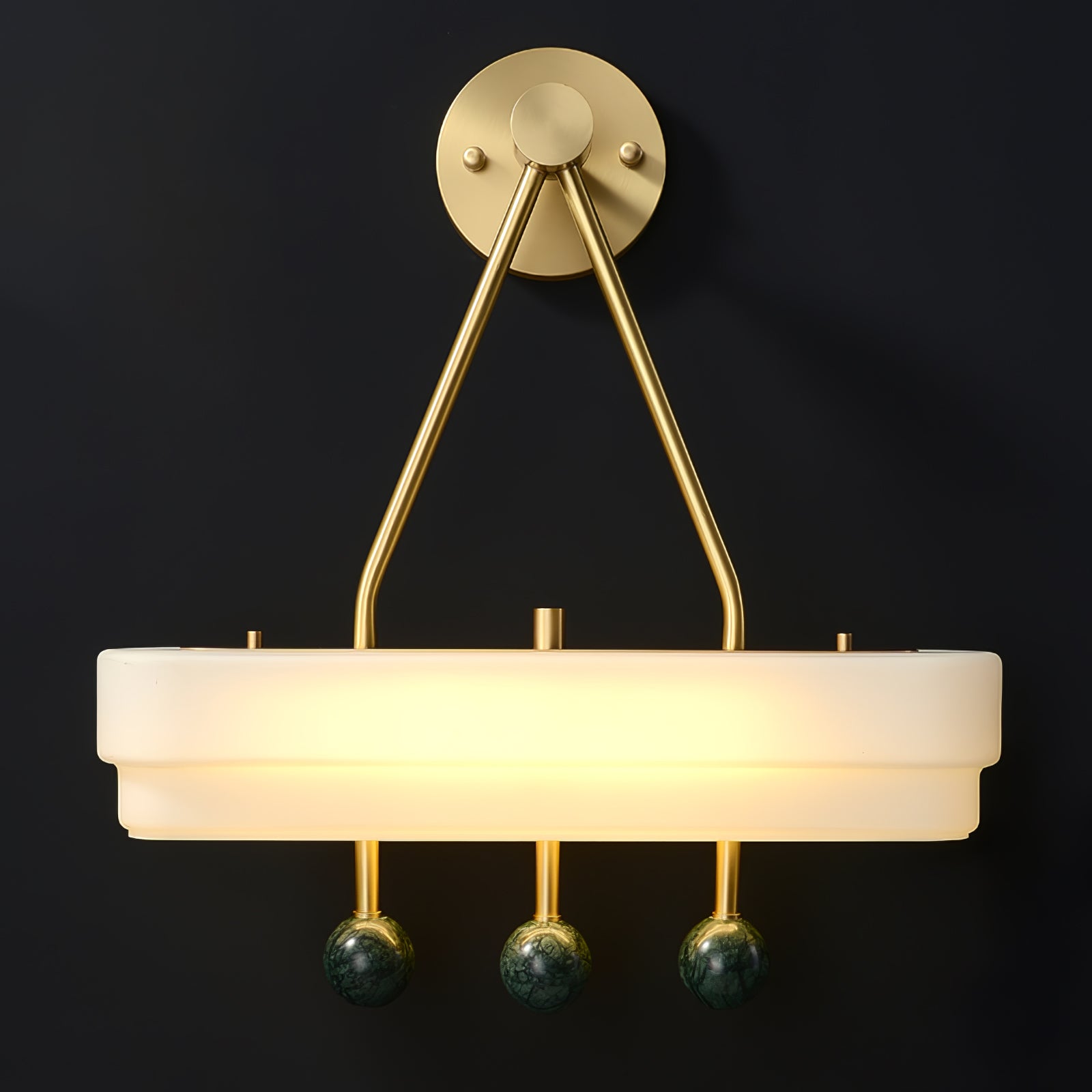Spate Wall Light tuo Art Deco -tyyliin nokkauksen ainutlaatuisella, opaalihapolla syövytetyllä lasivarjostimella ja kahdella kimaltelevalla marmoripallolla. Se on täydellinen lisä mihin tahansa asuintiloihin.