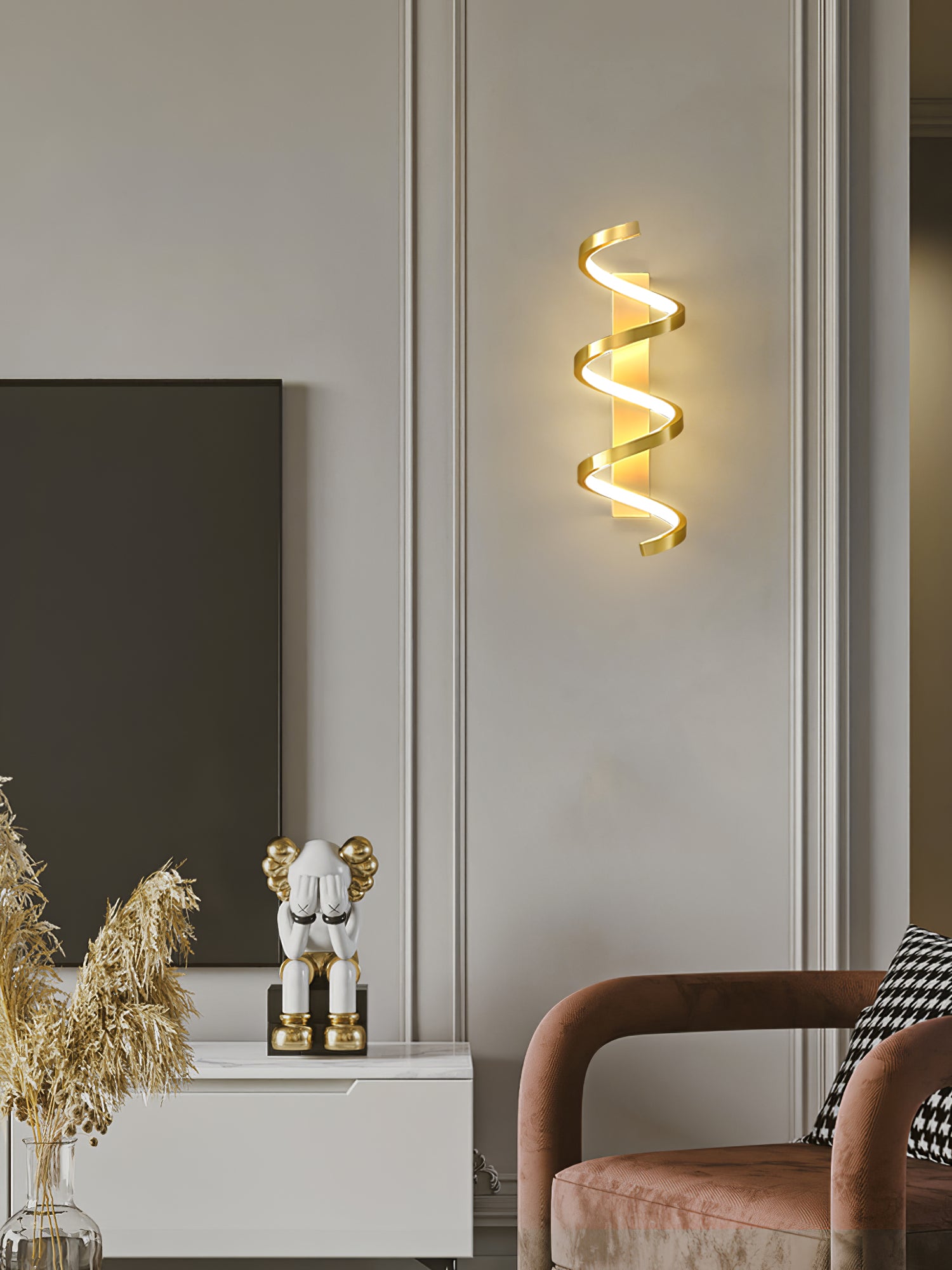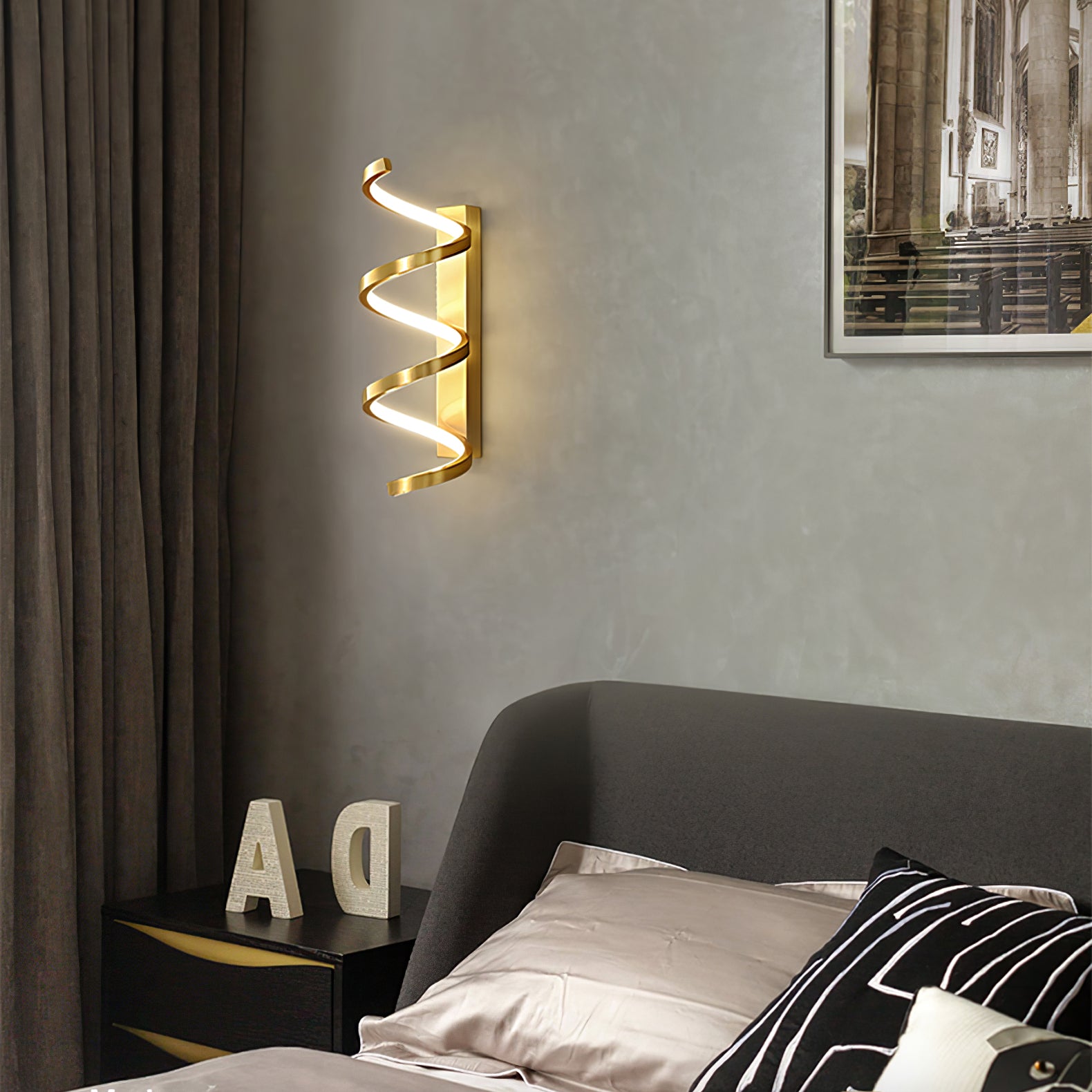 Spiraaliseinävalaisimemme on täydellinen tapa herättää sisustuksesi henkiin. Se on valmistettu laadukkaasta messingistä ja LED-tekniikasta, ja siinä on kolme valaistusasetusta, jotka sopivat mihin tahansa tunnelmaan. Moderni muotoilumme lisää tyylikkyyttä mihin tahansa huoneeseen.