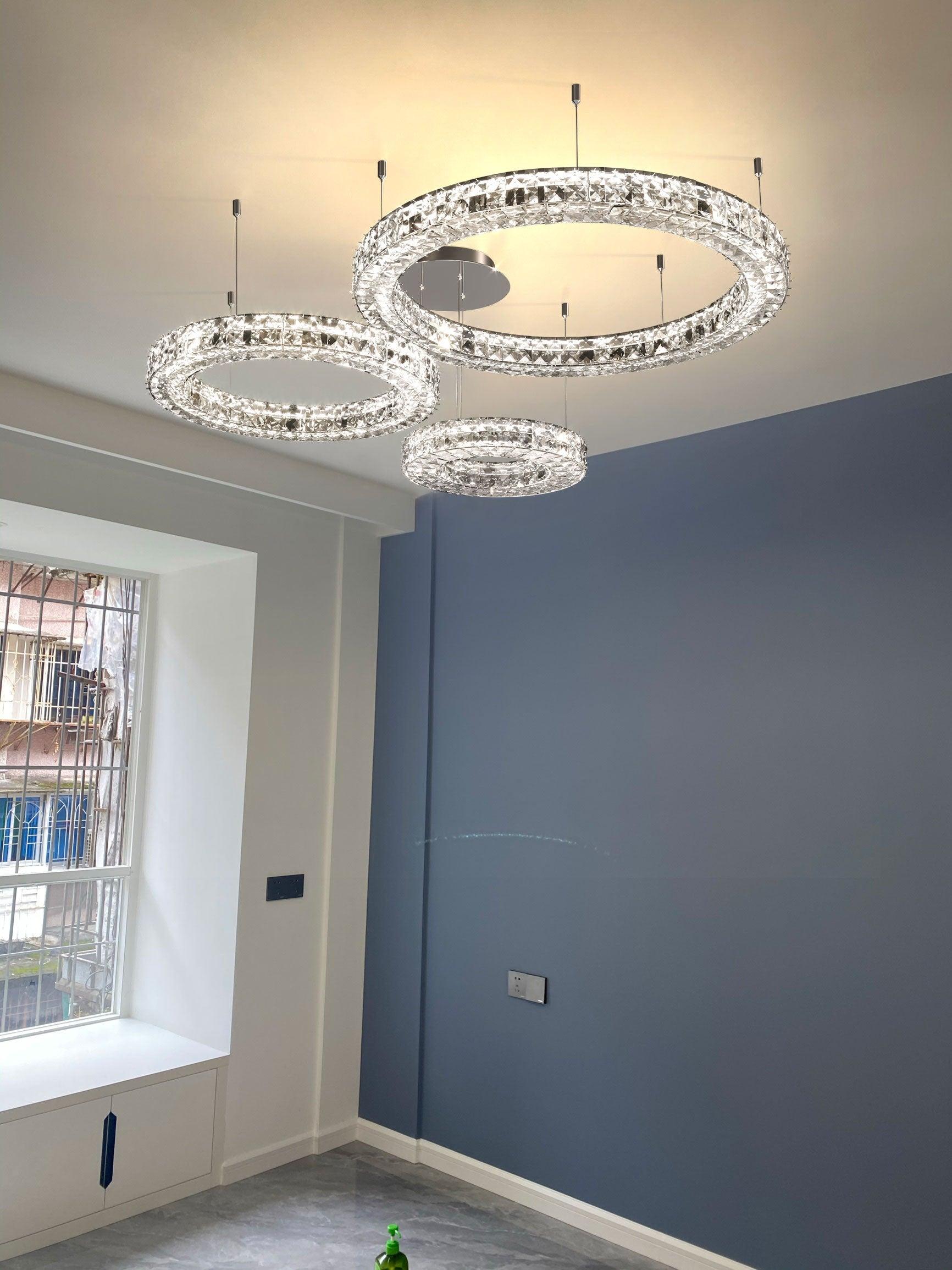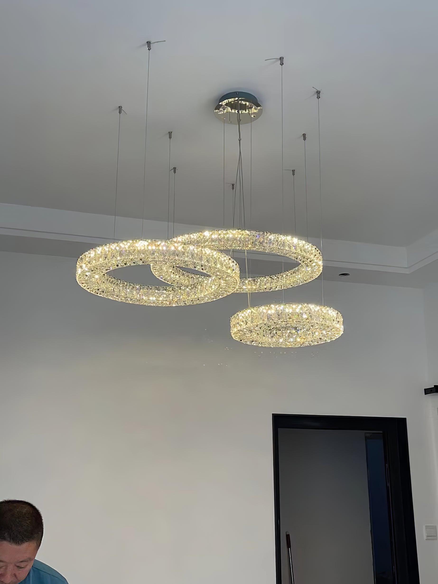 Toistaen 1960-luvun itävaltalaisen valaistuksen ylellistä muotoilua, valaisimemme fasetoidut kiteet on asetettu käsin mattarautakehykseen ja ripustettu ohuisiin johtoihin, mikä luo kimaltelevan polttopisteen yläpuolelle.