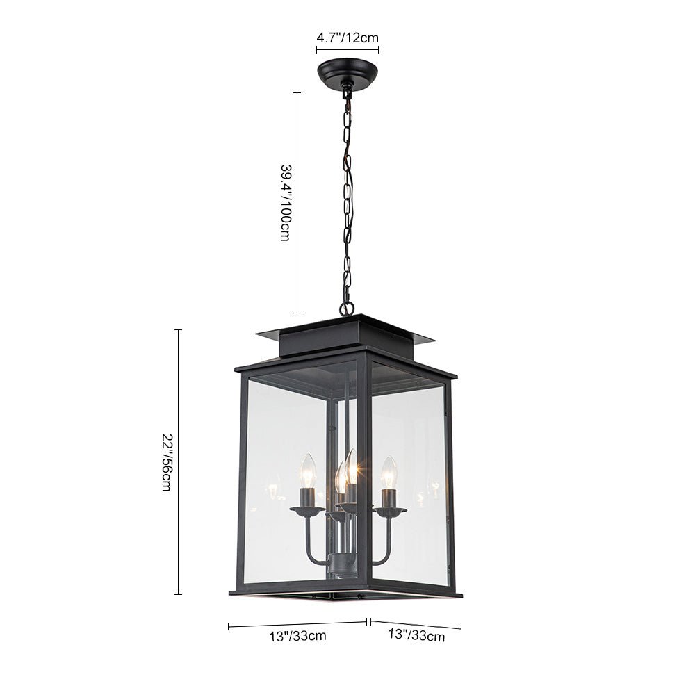 Tämä lyhty riippuvalaisin on vintage maalaistalo, jossa on minimalistinen laatikkomuotoilu ja kirkkaat lasipaneelit. Neliönmuotoisessa laatikossa on 4 valon kynttilän muotoinen kanta, johon mahtuu neljä E12/E14 kynttilänjalkaa (ei sisällä). Tämä mattamusta viimeistely lisää modernia ja tyylikästä rustiikkia tunnelmaa tähän maalaistalon mustaan lyhtyriipukseen. Ripusta tämä neliön muotoinen lyhtyriippuvalaisin keittiösaarekkeen, ruokapöytäsi, eteisen, eteisen tai muiden asuintilojesi yläpuolelle saadaksesi hillittyä kartanotyyliä.Tiedot