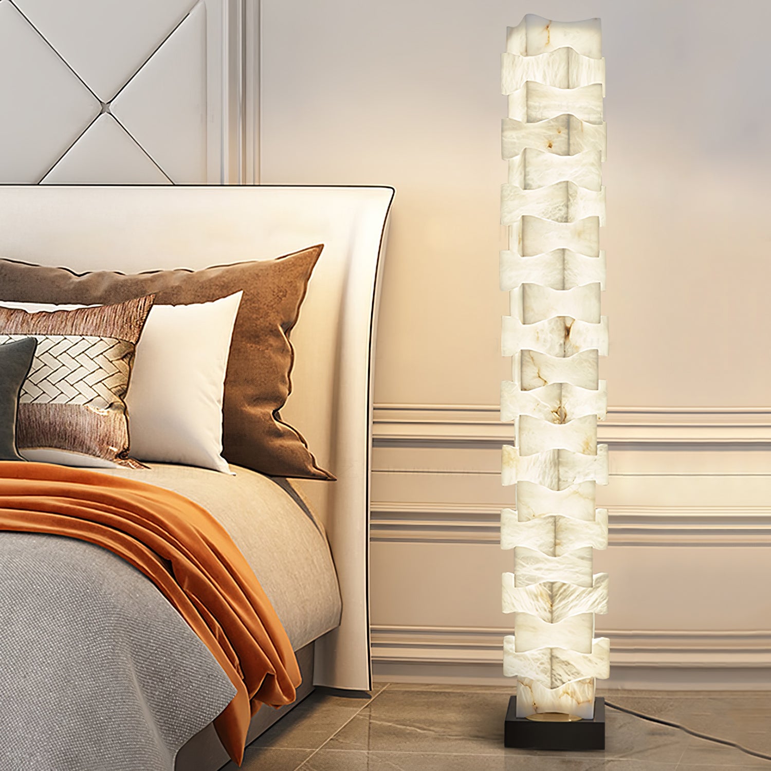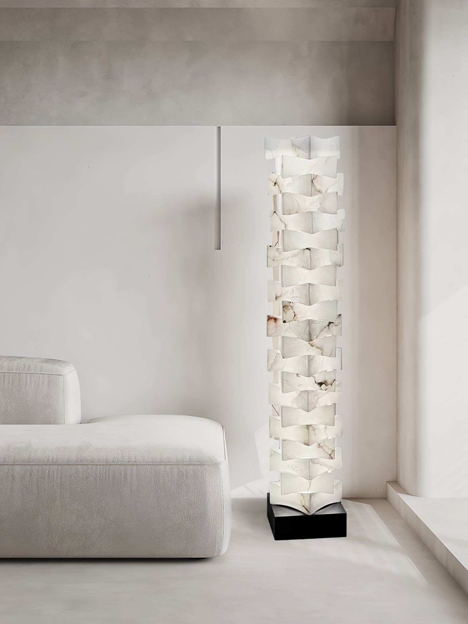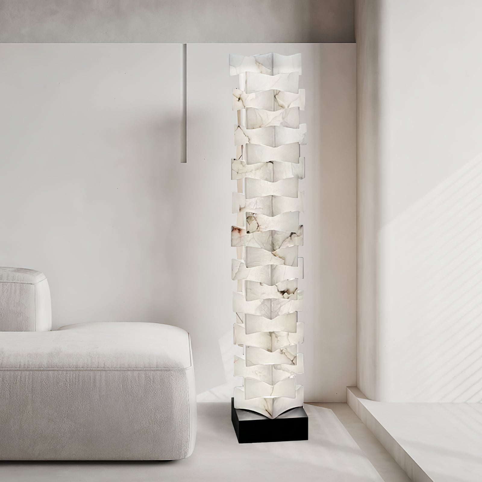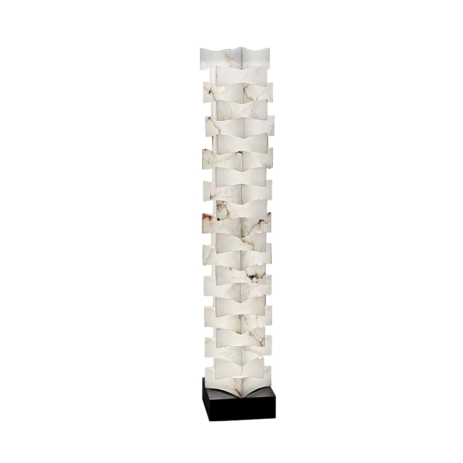 Staked Alabaster Squares -lattiavalaisin tarjoaa upean, ainutlaatuisen ilmeen mihin tahansa huoneeseen. Alabasterista valmistettu lamppu luo eteeristä hehkua ja säteilee pehmeää, kutsuvaa valoa. Sen ajaton muotoilu täydentää minkä tahansa kodin sisustuksen ja tekee siitä todella upean.
