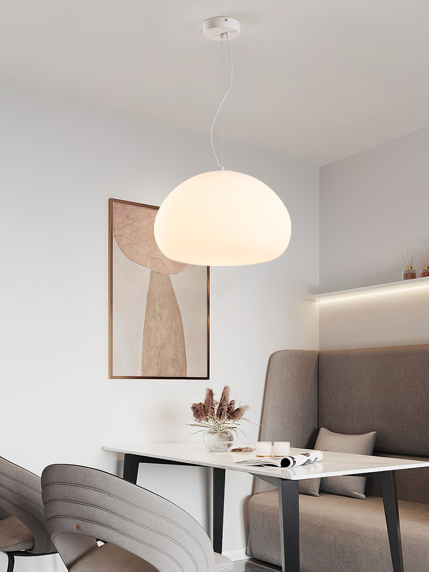 Steamed Bun Pendant Light on katseenvangitsija lisäys mihin tahansa huoneeseen. Valmistettu korkealaatuisesta lasista, tämä valo säteilee pehmeää ja lämmintä hehkua, joka on täydellinen kodikkaan tunnelman luomiseen. Sen tyylikäs muotoilu lisää ainutlaatuista tunnelmaa jokaiseen kotiin, tehden siitä sekä tyylikkään että käytännöllisen.