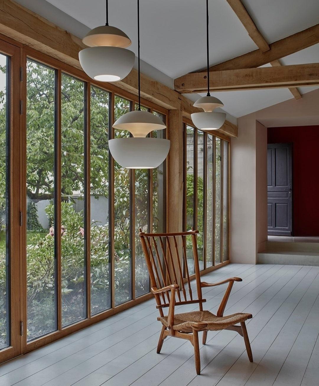 Riippuvalaisin, joka on saanut inspiraationsa auringonlaskuista Garonne-joen yli Lounais-Ranskassa. Pallomaisessa riippuvalaisimessa on mielenkiintoinen valosäteily, joka valaisee yhtä aikaa sekä suoraa että epäsuoraa. Riippuvalaisin voidaan siten sijoittaa ruokapöydän yläpuolelle tai luoda viihtyisää valaistusta sohvapöydän yläpuolelle. Here Comes The Sun -riippuvalaisin on valmistettu alumiinista erilaisissa väriyhdistelmissä ja -kokoisissa, joita on myös helppo yhdistää toisiinsa.